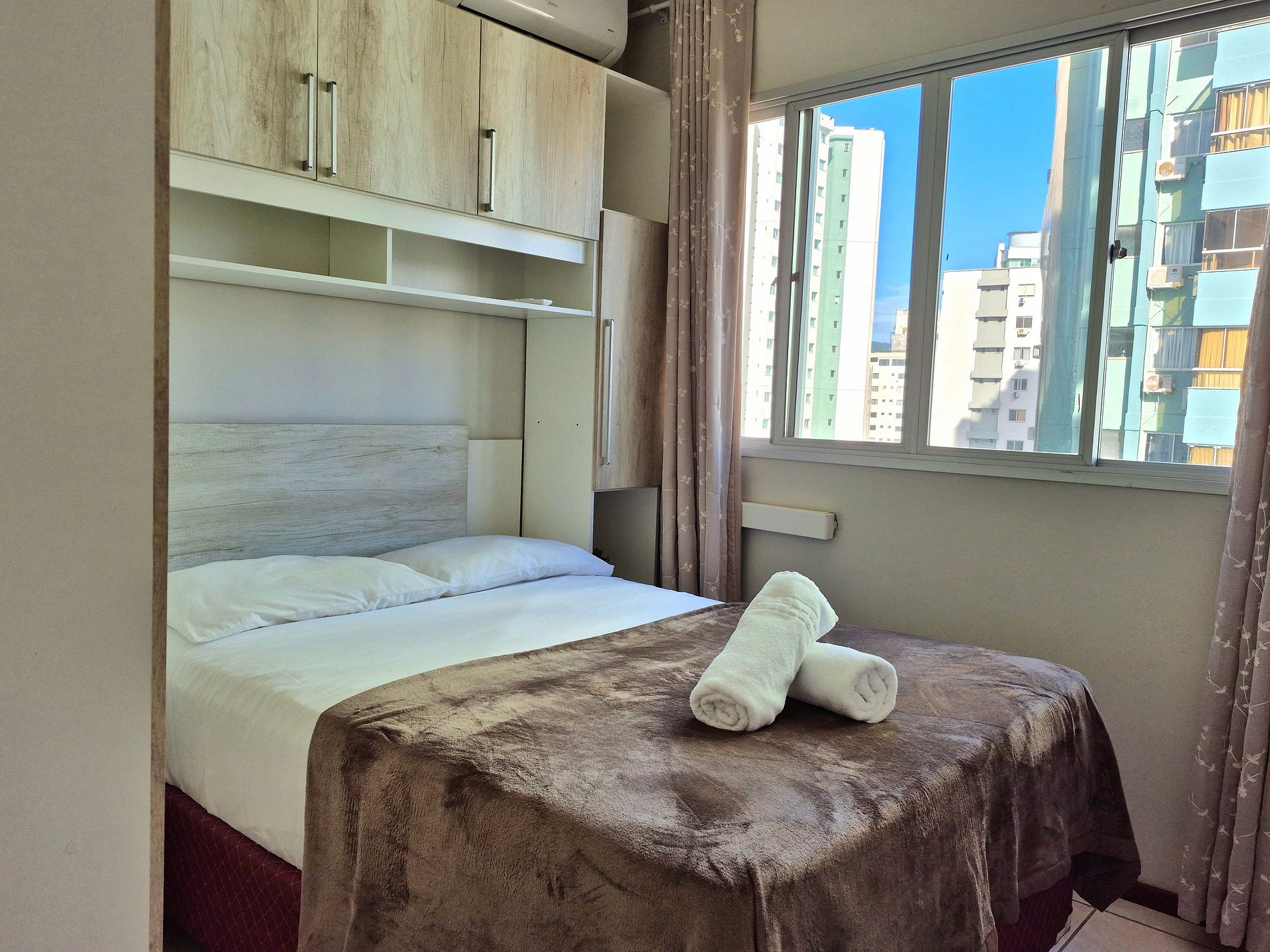 Apartamento na quadra do mar com sacada e vista para a cidade. Localizado na Av. Brasil na região central próximo a Barra Sul, pertinho de estabelecimentos diversos que atendem as necessidades do dia a dia e restaurantes de alta gastronomia. Sacada ampla e ensolarada com vista lateral para o mar, vista para cidade e de frente para Av. Brasil.