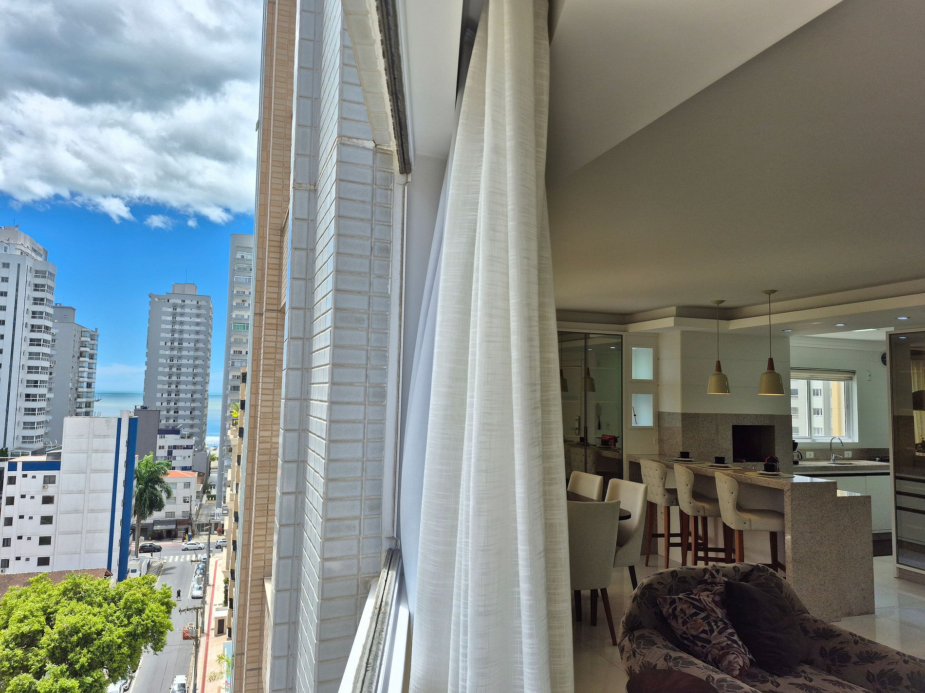Este espaçoso apartamento oferece acomodações confortáveis e bem distribuídas. A suíte principal conta com cama king-size e tv. A segunda suíte possui cama de casal e a terceira suíte conta com uma cama de casal e uma cama de solteiro, tv e frigobar, acomodando confortavelmente diferentes configurações de hóspedes. Há um lavabo para maior comodidade. Proporcionando momentos de lazer e refeições especiais, a cozinha é totalmente equipada e integrada à área de estar, garantindo praticidade e conforto. Há também o diferencial da CHURRASQUEIRA A CARVÃO integrada a cozinha, que proporciona momentos muito prazerosos a famílias que curtem fazer um churrasco, e confraternizar juntos. Conta ainda com lavanderia equipada com máquina de lavar e varal, garantindo praticidade para sua estadia.