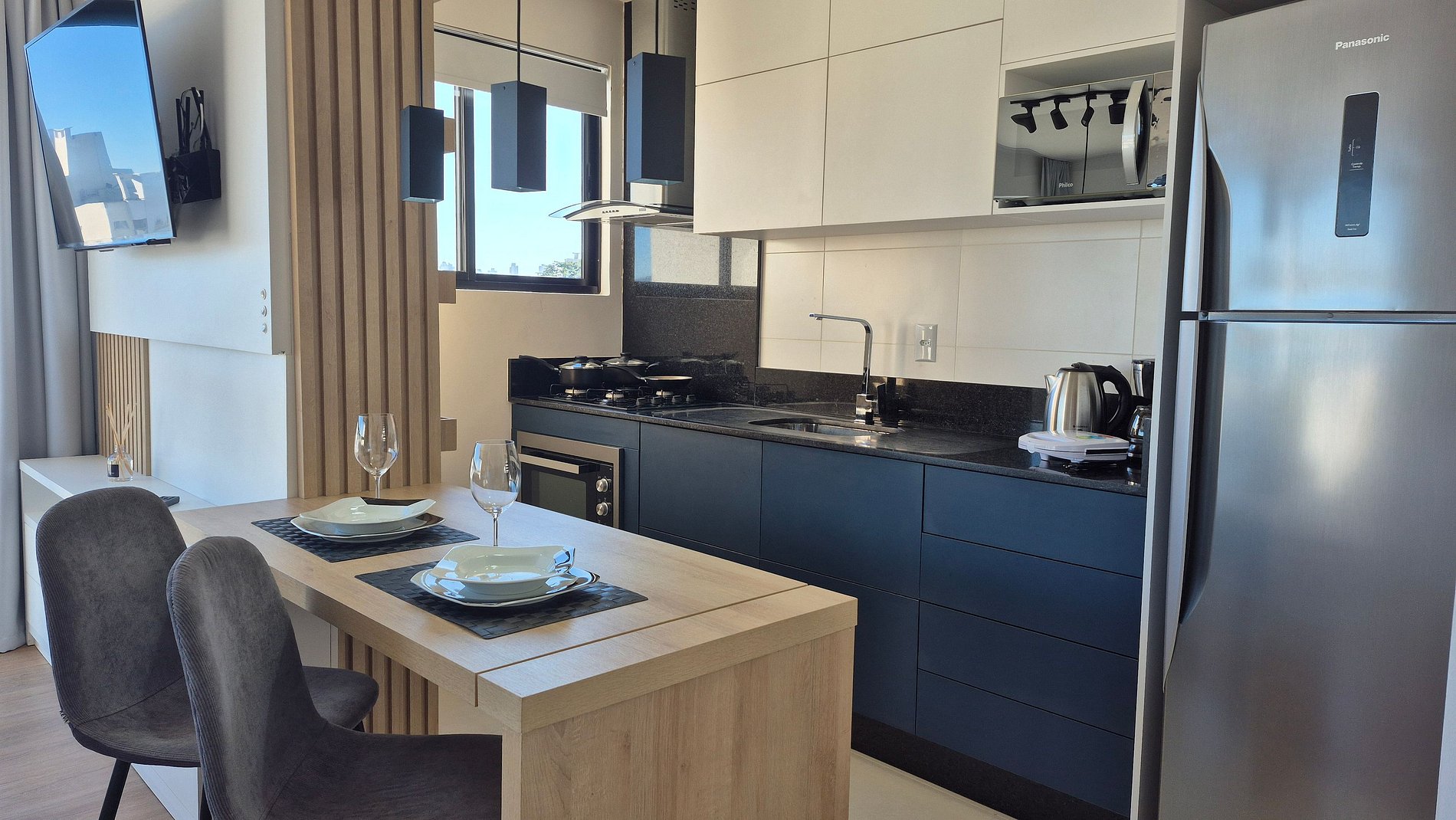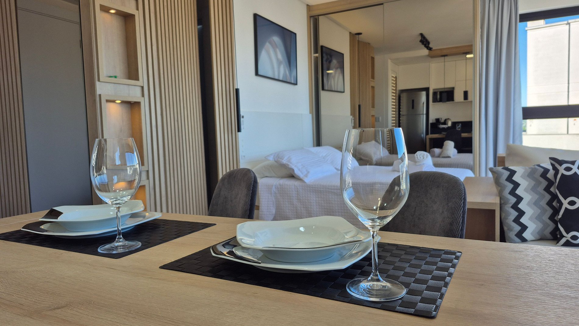 O studio destaca-se pelo design contemporâneo e pela funcionalidade dos ambientes. A decoração clean e os equipamentos modernos proporcionam uma experiência acolhedora aos hóspedes. A cama de casal e o sofá cama confortáveis, a cozinha equipada e o espaço de trabalho dedicado contribuem para uma estadia agradável.
