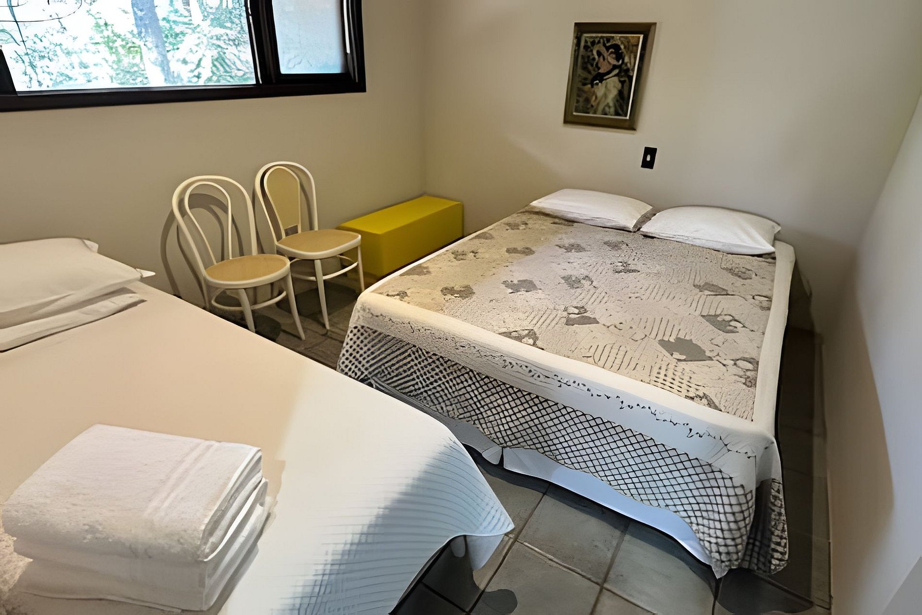 Esta ampla casa com 6 quartos em região próxima ao centro de Campo Alegre é um paraíso de tranquilidade e calmaria. Próximo ao comércio central da cidade, a casa conta com grande espaço verde de 4.000 m2, que permite que as pessoas desfrutem da natureza e tranquilidade da cidade. A casa conta com 2 lareiras internas, confortáveis quartos, ampla varanda virada ao lindo gramado frontal, repleta de araucárias e árvores frutíferas. Desfrute com sua família deste pasaíso! O espaço Nossa casa pode ser dividida em até 3 espaços diferentes, de acordo com a quantidade de pessoas que se hospedarão. A casa comporta até 16 pessoas confortavelmente, mas, alugamos também para grupos menores, disponibilizando os quartos do andar de cima e/ou debaixo seguindo descrição abaixo: Locação do espaço do piso TÉRREO (Até 6 pessoas) 1. Lavabo 2. Lavanderia 3. Cozinha 4. Sala de Jantar com lareira 5. Ampla Sala de estar com lareira 6. Sala de TV com sofá cama 7. 1 Quarto com cama de casal 8. Suíte Master com 1 cama super king + 1 cama de solteiro 9. Banheiro Social com banheira e chuveiro separados 10. Lavabo social Locação do espaço do piso SUPERIOR (Até 10 pessoas) Piso Superior 1. Suíte com 1 cama Queen 2. Quarto com 1 cama de casal 3. 2 Quartos com 1 cama de casal + 1 cama de solteiro (cada) 4. Sala de estar 5. Banheiro social Acesso do hóspede Todos os ambientes da casa estão à disposição dos hóspedes. Outras observações Esta ampla casa com 6 quartos em região próxima ao centro de Campo Alegre é um paraíso de tranquilidade e calmaria. Próximo ao comércio central da cidade, a casa conta com grande espaço verde de 4.000 m2, que permite que as pessoas desfrutem da natureza e tranquilidade da cidade. A casa conta com 2 lareiras internas, confortáveis quartos, ampla varanda virada ao lindo gramado frontal, repleta de araucárias e árvores frutíferas. Desfrute com sua família deste paraíso! Pedimos a gentileza de respeitarem a lei do silêncio e que ajudem-nos a manter a tranquilidade da nossa área familiar, pois estamos em região central e com muitos vizinhos nas proximidades. Desfrutem da paz e dos sons da natureza, evitando barulhos excessivos. Agradecemos muito a sua compreensão! RESUMO Quartos: 2 suítes + 4 quartos Banheiros: 4 banheiros + 2 lavabos Vagas de garagem: Espaço descoberto para 6 carros DESCRIÇÃO DA HABITAÇÃO: Piso térreo 1. Lavabo 2. Lavanderia 3. Cozinha 4. Sala de Jantar com lareira 5. Ampla Sala de estar com lareira 6. Sala de TV com sofá cama 7. 1 Quarto com cama de casal 8. Suíte Master com 1 cama super king + 1 cama de solteiro 9. Banheiro Social com banheira e chuveiro separados 10. Lavabo social Área Externa 1. Ampla varanda com lindo gramado frontal com lareira/churrasqueira fogo de chão 2. Área descoberta para estacionar cerca de 6 carros Piso Superior 1. Suíte com 1 cama Queen 2. Quarto com 1 cama de casal 3. 2 Quartos com 1 cama de casal + 1 cama de solteiro (cada) 4. Sala de estar 5. Banheiro social 6. Casinha na árvore, para crianças, com playground. Máquina de lavar; Cozinha completa e equipada; Permitidos animais; SmarTV com BTV Wi fi de boa qualidade Roupas de camas e toalhas inclusas * As imagens são de momentos de hóspedes na casa, e não inclui todos brinquedos, acessórios de gastronomia e musicais.
