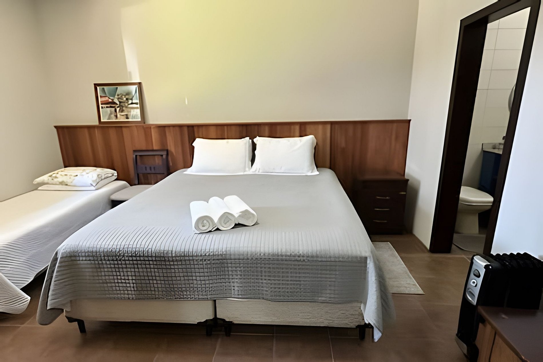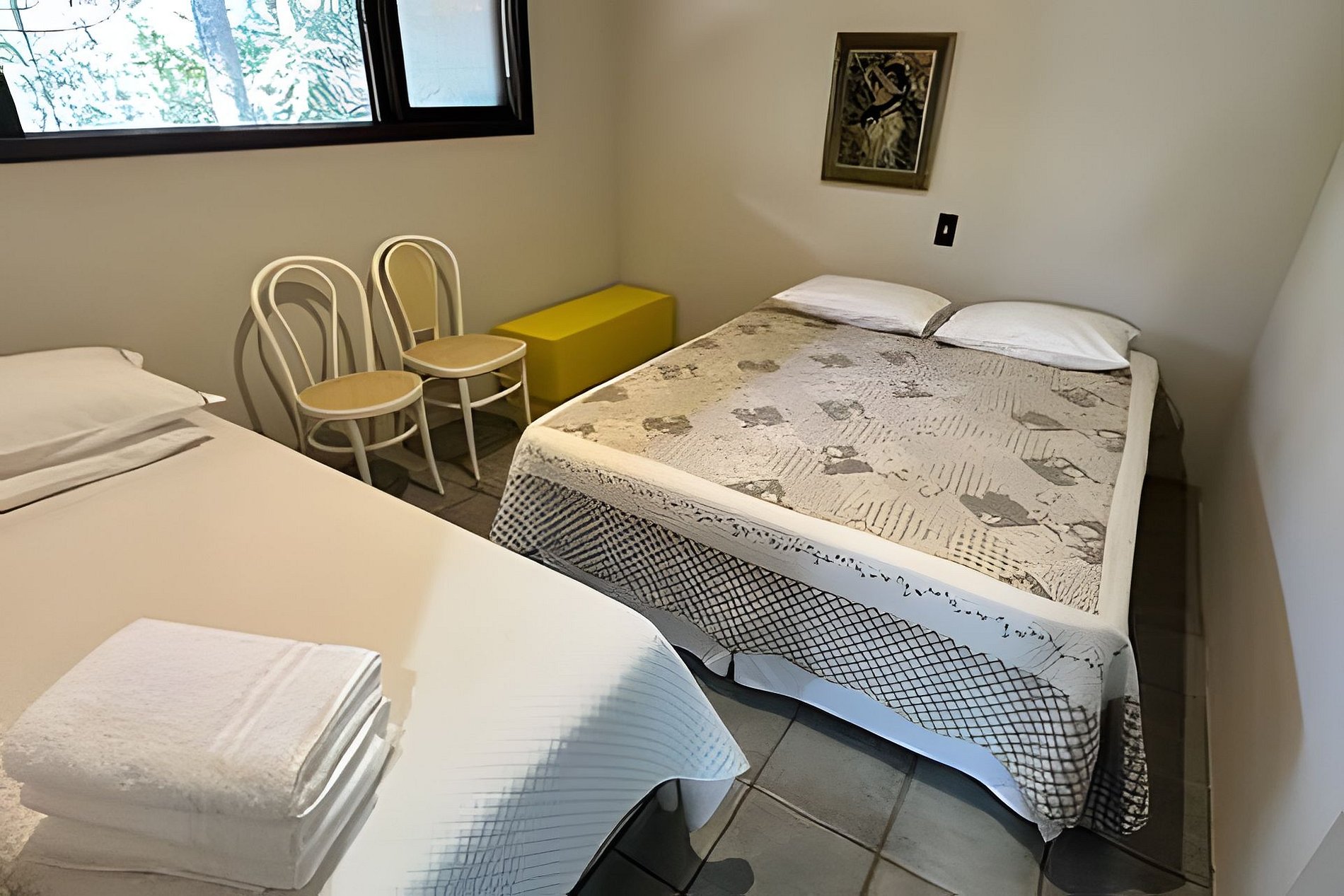 Esta ampla casa com 6 quartos em região próxima ao centro de Campo Alegre é um paraíso de tranquilidade e calmaria. Próximo ao comércio central da cidade, a casa conta com grande espaço verde de 4.000 m2, que permite que as pessoas desfrutem da natureza e tranquilidade da cidade. A casa conta com 2 lareiras internas, confortáveis quartos, ampla varanda virada ao lindo gramado frontal, repleta de araucárias e árvores frutíferas. Desfrute com sua família deste pasaíso! O espaço Nossa casa pode ser dividida em até 3 espaços diferentes, de acordo com a quantidade de pessoas que se hospedarão. A casa comporta até 16 pessoas confortavelmente, mas, alugamos também para grupos menores, disponibilizando os quartos do andar de cima e/ou debaixo seguindo descrição abaixo: Locação do espaço do piso TÉRREO (Até 6 pessoas) 1. Lavabo 2. Lavanderia 3. Cozinha 4. Sala de Jantar com lareira 5. Ampla Sala de estar com lareira 6. Sala de TV com sofá cama 7. 1 Quarto com cama de casal 8. Suíte Master com 1 cama super king + 1 cama de solteiro 9. Banheiro Social com banheira e chuveiro separados 10. Lavabo social Locação do espaço do piso SUPERIOR (Até 10 pessoas) Piso Superior 1. Suíte com 1 cama Queen 2. Quarto com 1 cama de casal 3. 2 Quartos com 1 cama de casal + 1 cama de solteiro (cada) 4. Sala de estar 5. Banheiro social Acesso do hóspede Todos os ambientes da casa estão à disposição dos hóspedes. Outras observações Esta ampla casa com 6 quartos em região próxima ao centro de Campo Alegre é um paraíso de tranquilidade e calmaria. Próximo ao comércio central da cidade, a casa conta com grande espaço verde de 4.000 m2, que permite que as pessoas desfrutem da natureza e tranquilidade da cidade. A casa conta com 2 lareiras internas, confortáveis quartos, ampla varanda virada ao lindo gramado frontal, repleta de araucárias e árvores frutíferas. Desfrute com sua família deste paraíso! Pedimos a gentileza de respeitarem a lei do silêncio e que ajudem-nos a manter a tranquilidade da nossa área familiar, pois estamos em região central e com muitos vizinhos nas proximidades. Desfrutem da paz e dos sons da natureza, evitando barulhos excessivos. Agradecemos muito a sua compreensão! RESUMO Quartos: 2 suítes + 4 quartos Banheiros: 4 banheiros + 2 lavabos Vagas de garagem: Espaço descoberto para 6 carros DESCRIÇÃO DA HABITAÇÃO: Piso térreo 1. Lavabo 2. Lavanderia 3. Cozinha 4. Sala de Jantar com lareira 5. Ampla Sala de estar com lareira 6. Sala de TV com sofá cama 7. 1 Quarto com cama de casal 8. Suíte Master com 1 cama super king + 1 cama de solteiro 9. Banheiro Social com banheira e chuveiro separados 10. Lavabo social Área Externa 1. Ampla varanda com lindo gramado frontal com lareira/churrasqueira fogo de chão 2. Área descoberta para estacionar cerca de 6 carros Piso Superior 1. Suíte com 1 cama Queen 2. Quarto com 1 cama de casal 3. 2 Quartos com 1 cama de casal + 1 cama de solteiro (cada) 4. Sala de estar 5. Banheiro social 6. Casinha na árvore, para crianças, com playground. Máquina de lavar; Cozinha completa e equipada; Permitidos animais; SmarTV com BTV Wi fi de boa qualidade Roupas de camas e toalhas inclusas * As imagens são de momentos de hóspedes na casa, e não inclui todos brinquedos, acessórios de gastronomia e musicais.