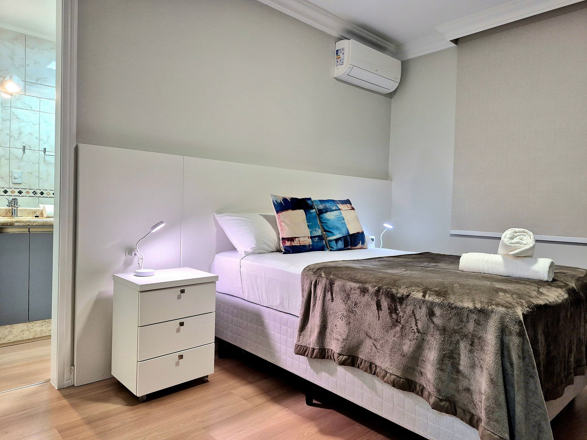 O apê foi praticamente planejato para os hóspedes! Temos quartos completos com enxoval de cama e banho, ampla sala de estar e jantar integradas com espaço e estrutura para sua estadia, além de uma varanda com churrasqueira a carvão e vaga de garagem privativa.