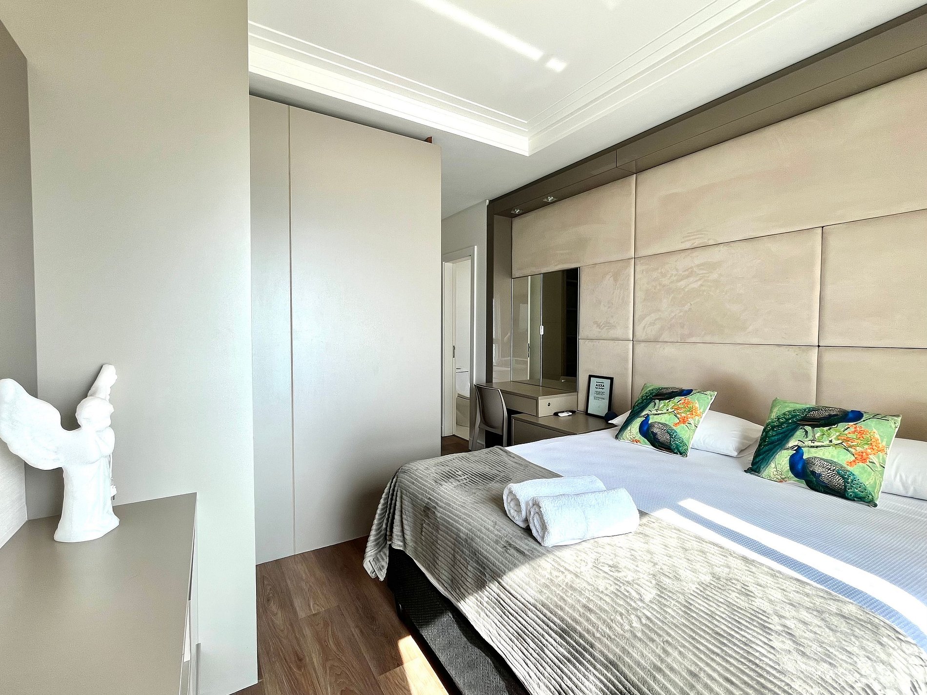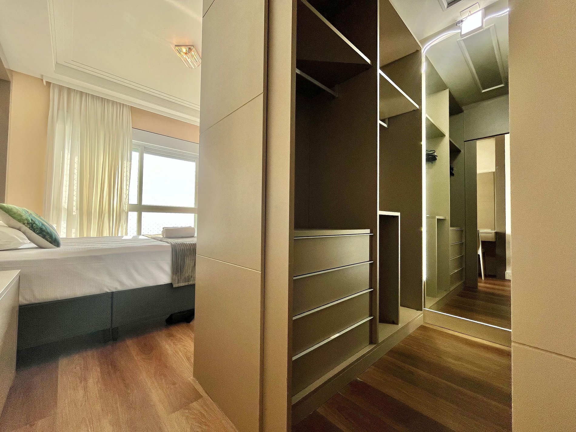 Na suíte principal e na sala de estar temos o sistema integrado Alexa. Tv smart e uma varanda com vista incrível para a praia de BC.
