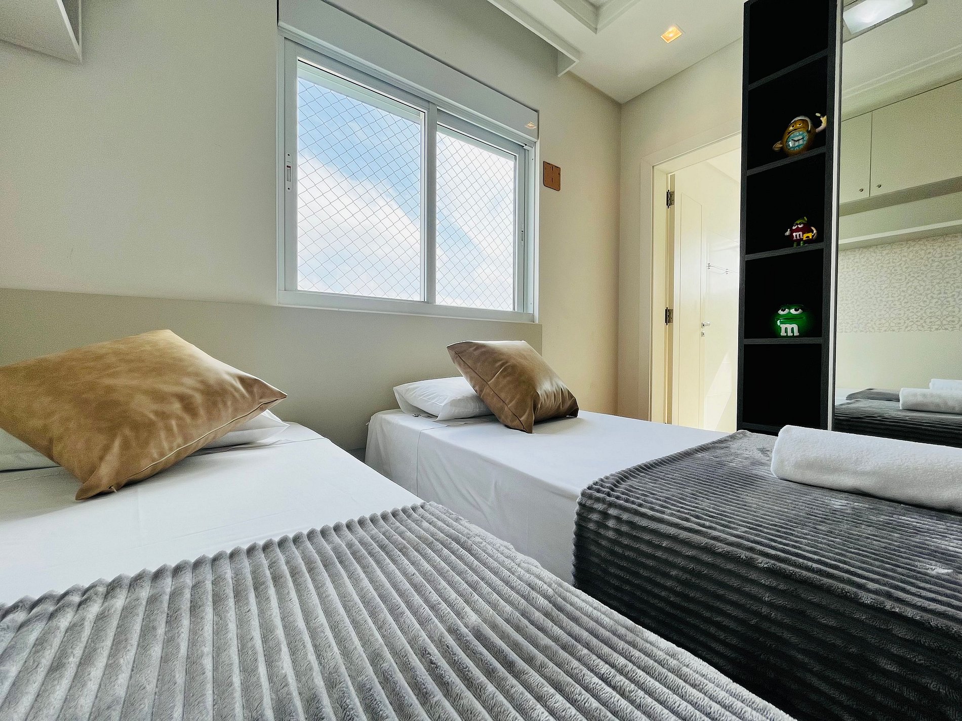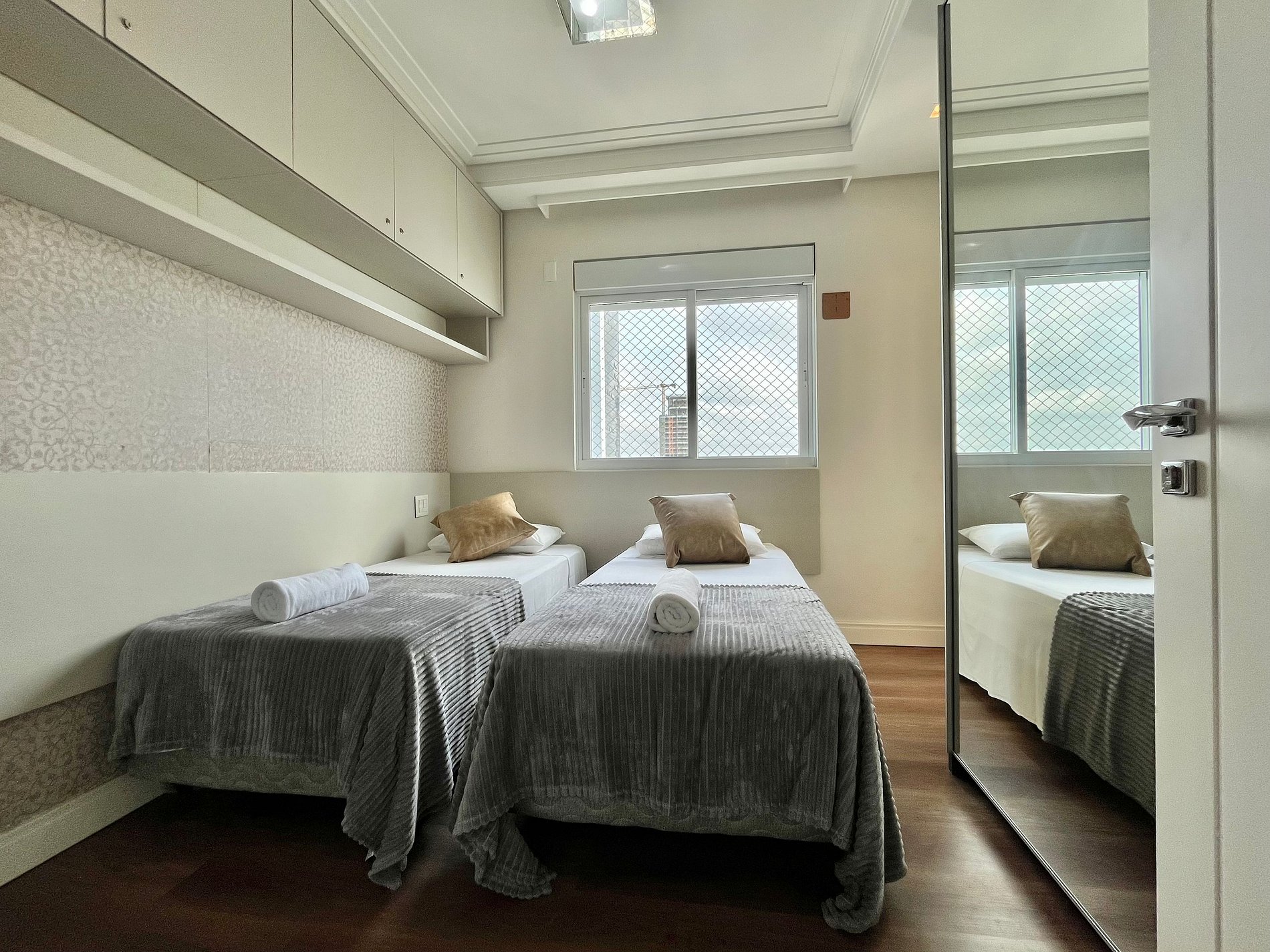 São 4 quartos (sendo 2 suítes + 1 demi-suíte) 3 camas de casal (uma delas queen ortopédica) , 2 camas box de solteiro 1 sofá grande na sala, 2 colchões avulsos de solteiro e oferecemos até 5 vagas de garagem exclusivas – ideal para quem viaja com mais de um carro.