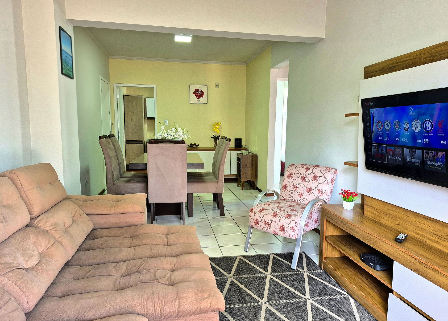Nosso apartamento possui 2 quartos confortáveis com ar condicionado, TV com aparelho Net Digital HD na sala e em um dos quartos. Sala de estar integrada a sala de jantar com mesa e cadeiras para acomodar sua família ou amigos. Cozinha completa com utensílios e eletrodomésticos. Área de serviço com máquina de lavar roupas. Temos uma sacada ampla e ensolarada, com vista para cidade, de frente pra Av. Brasil, uma das avenidas mais movimentadas de BC!