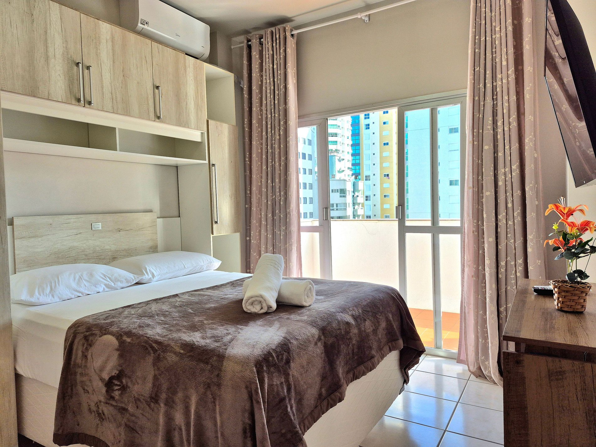 Apartamento na quadra do mar com sacada e vista para a cidade. Localizado na Av. Brasil na região central próximo a Barra Sul, pertinho de estabelecimentos diversos que atendem as necessidades do dia a dia e restaurantes de alta gastronomia. Sacada ampla e ensolarada com vista lateral para o mar, vista para cidade e de frente para Av. Brasil.