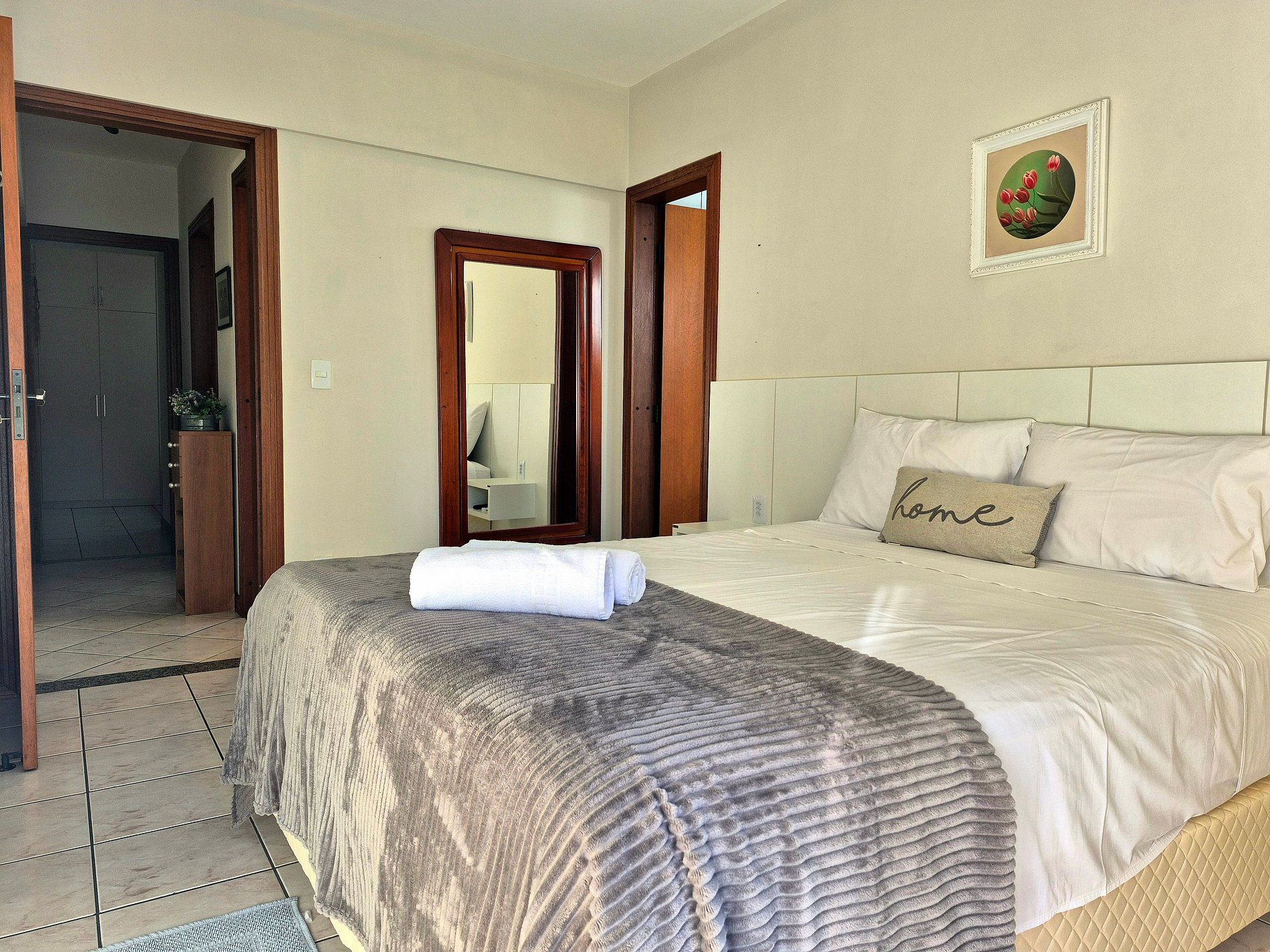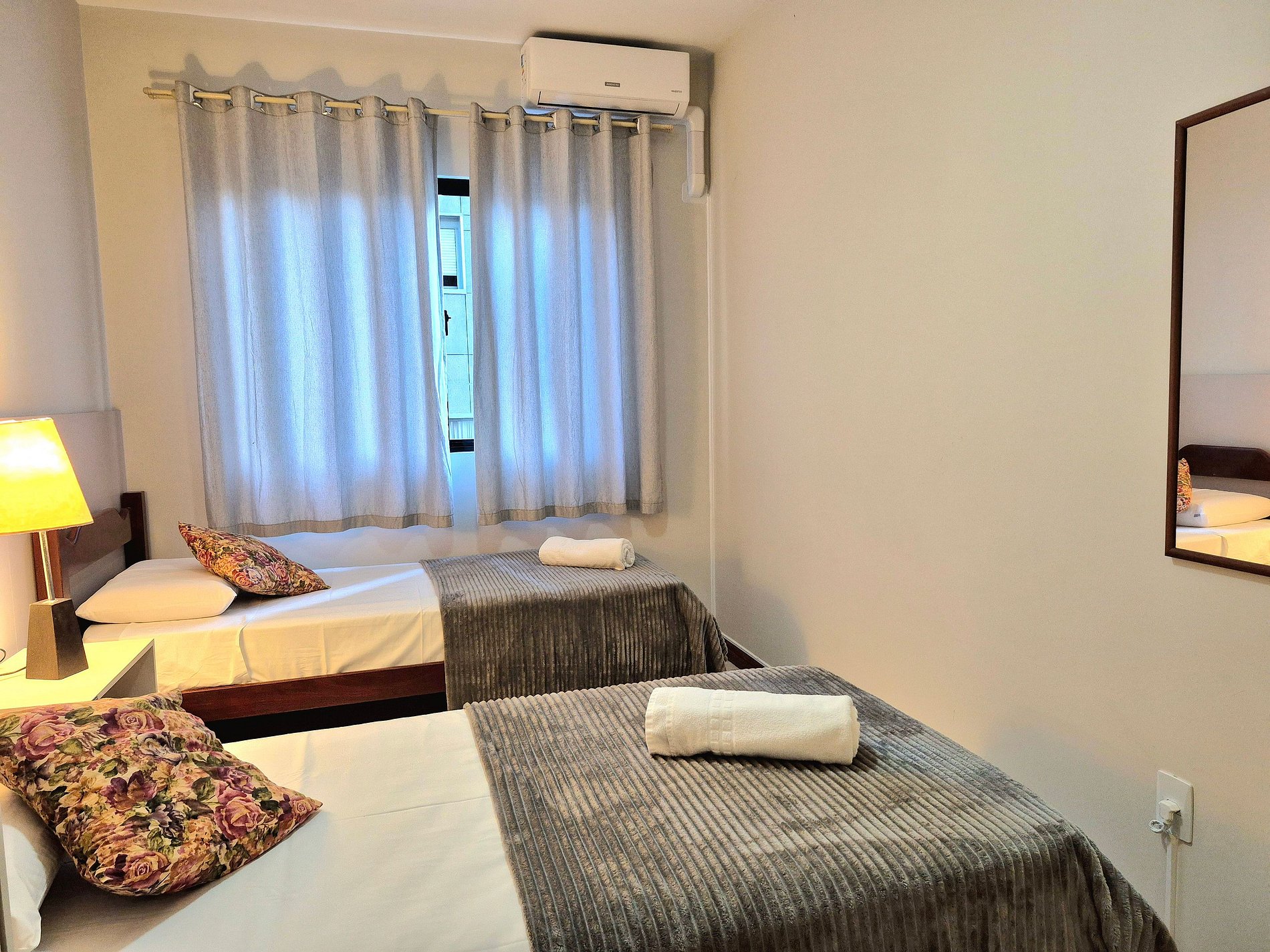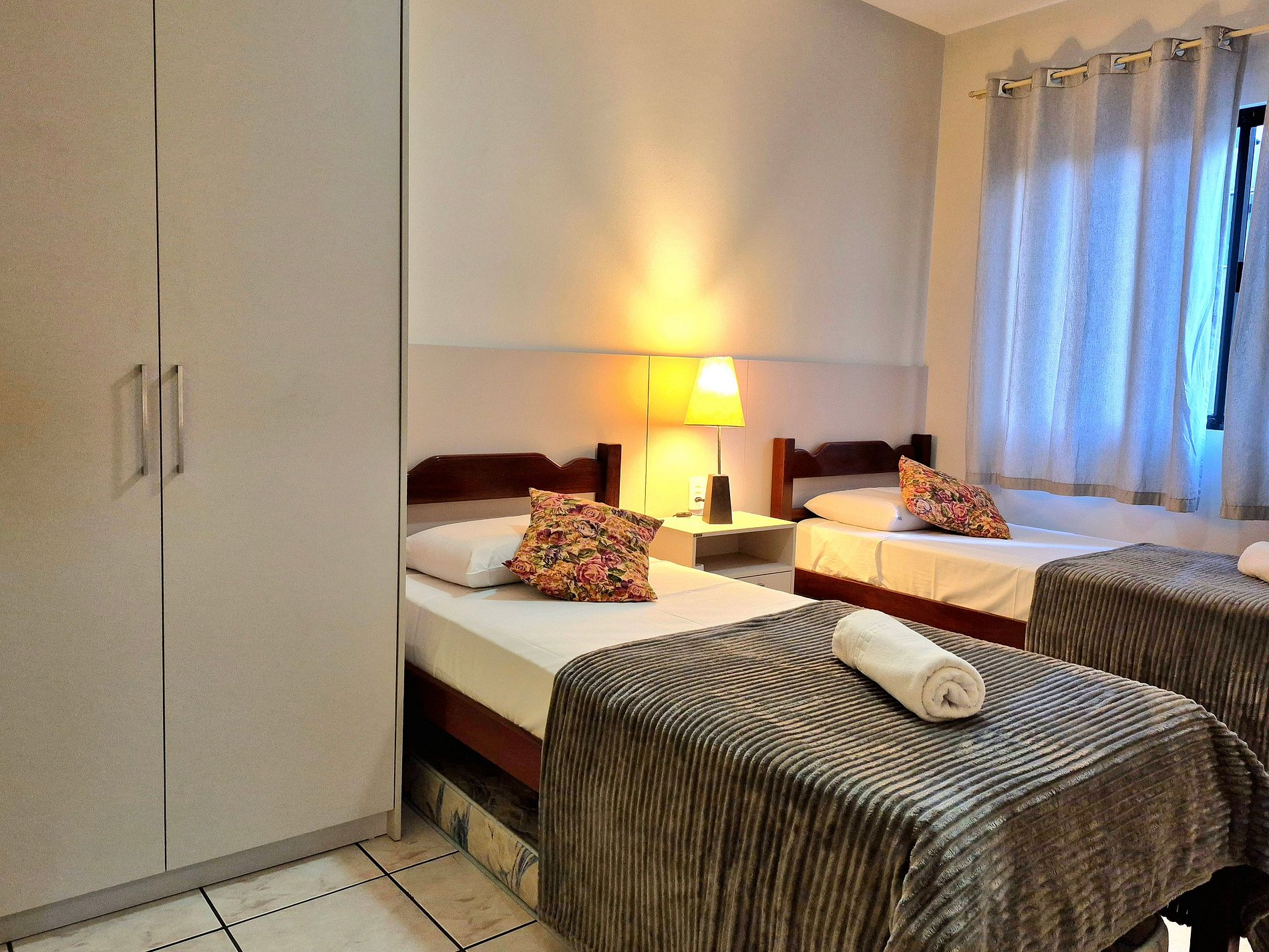 Nosso apartamento possui um quarto com cama de casal, um quarto com duas camas de solteiro, uma suíte com cama de casal e acesso a sacada. Recebemos você e sua família ou seus amigos com enxoval completo de cama, banho e amenidades.