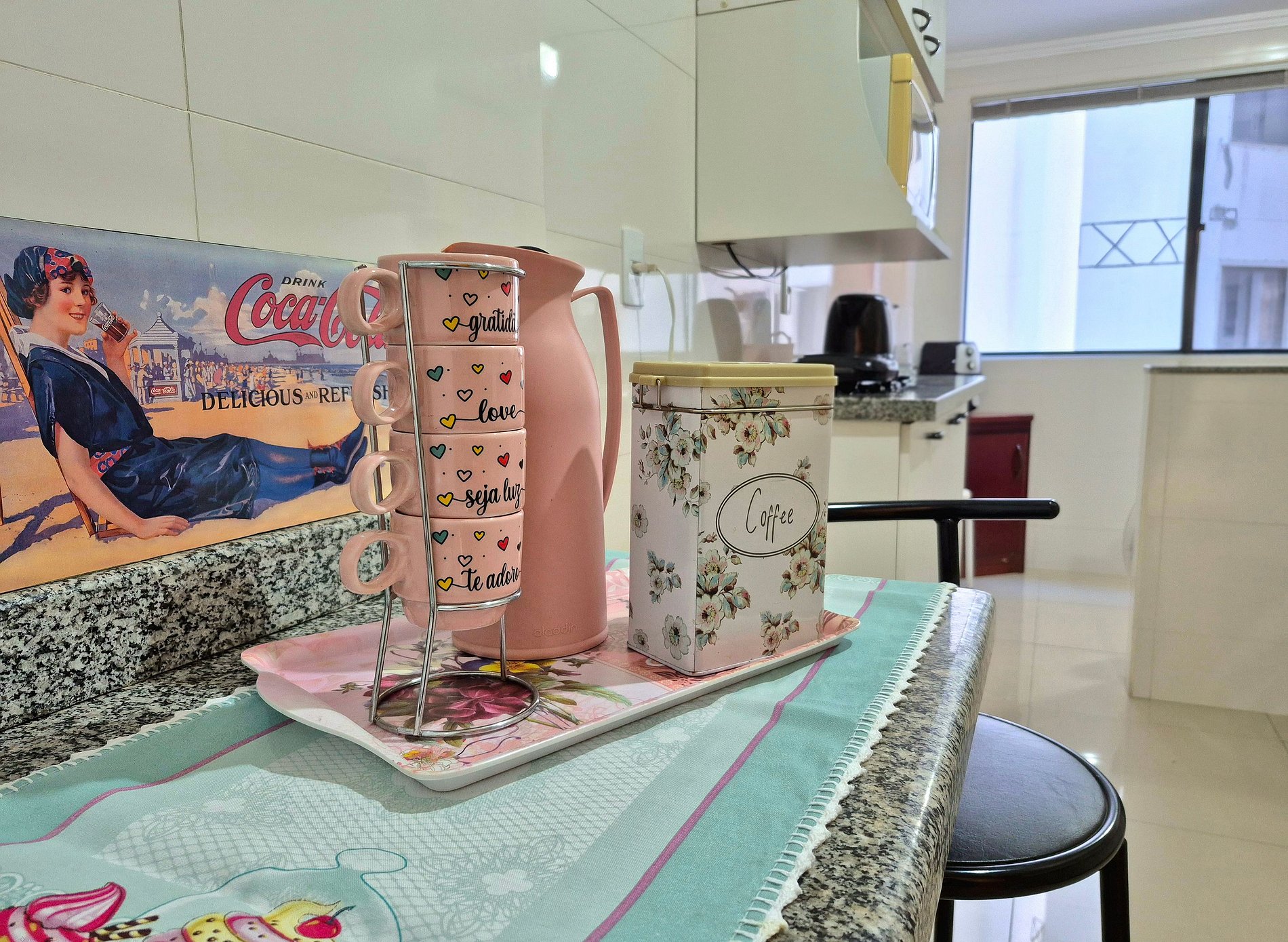 Aconchegante, completo e acolhedor! Apartamento pertinho da Av. Brasil, com acesso facilitado pra praia de BC e perfeito pra passar seus dias na cidade. Nossa cozinha é super bem equipada com eletrodomésticos e utensílios. Churrasqueira a carvão na sacada, com vista para a cidade.