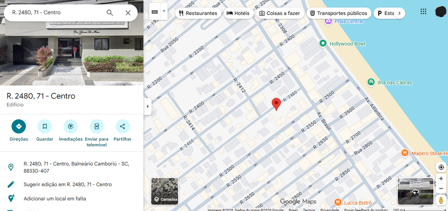 Estamos no Centro de Balneário Camboriú. Poucos passos da Av. Brasil, onde você encontra diversas opções de comércios como restaurantes, lojas, farmácias, conveniências, etc. Caminhando é possível suprir necessidades do dia a dia, passear em períodos de sua preferência e, além de tudo, é possível caminhar até a Av. Atlântica, passeando pela orla de BC e desfrutando da Praia Central!