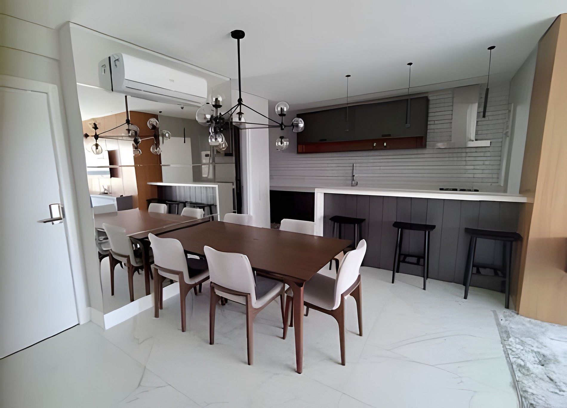 Apartamento novo, planejado e decorado. São 2 suítes de casal, um lavabo, cozinha gourmet completa. Sala de jantar e sala de estar. Em localização privilegiada na praia Brava, próximo aos principais restaurantes da região com vista para o mar, a poucos metros da areia da praia Brava!