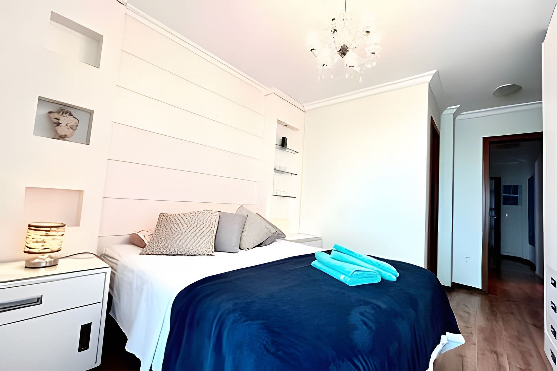 Nosso apê oferece 3 quartos, sendo uma suíte com cama queen, mais um quarto com cama queen e outro com duas camas de solteiro mais um colchão de solteiro. Nosso aquecimento a gás permite que o chuveiro seja bem confortável. O apê é bem equipado e decorado. Todos os cômodos contam com Ar condicionado.