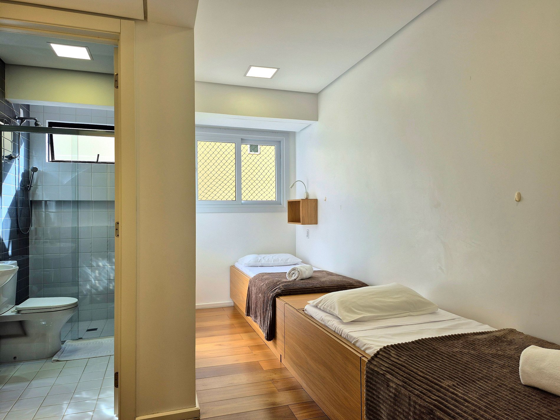 São 4 suítes confortáveis com banheiros amplos e completos.
