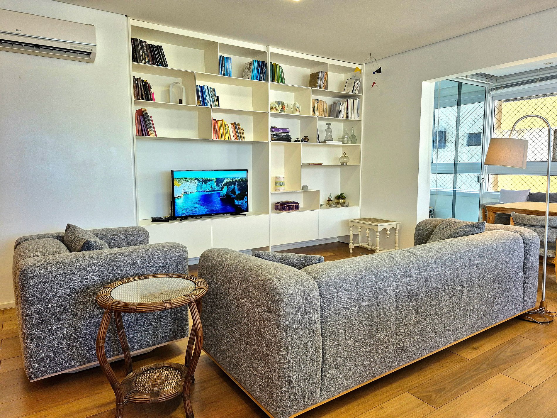 > Não temos ar condicionado em todos os quartos. Temos ar condicionado na sala e em mais dois quartos.