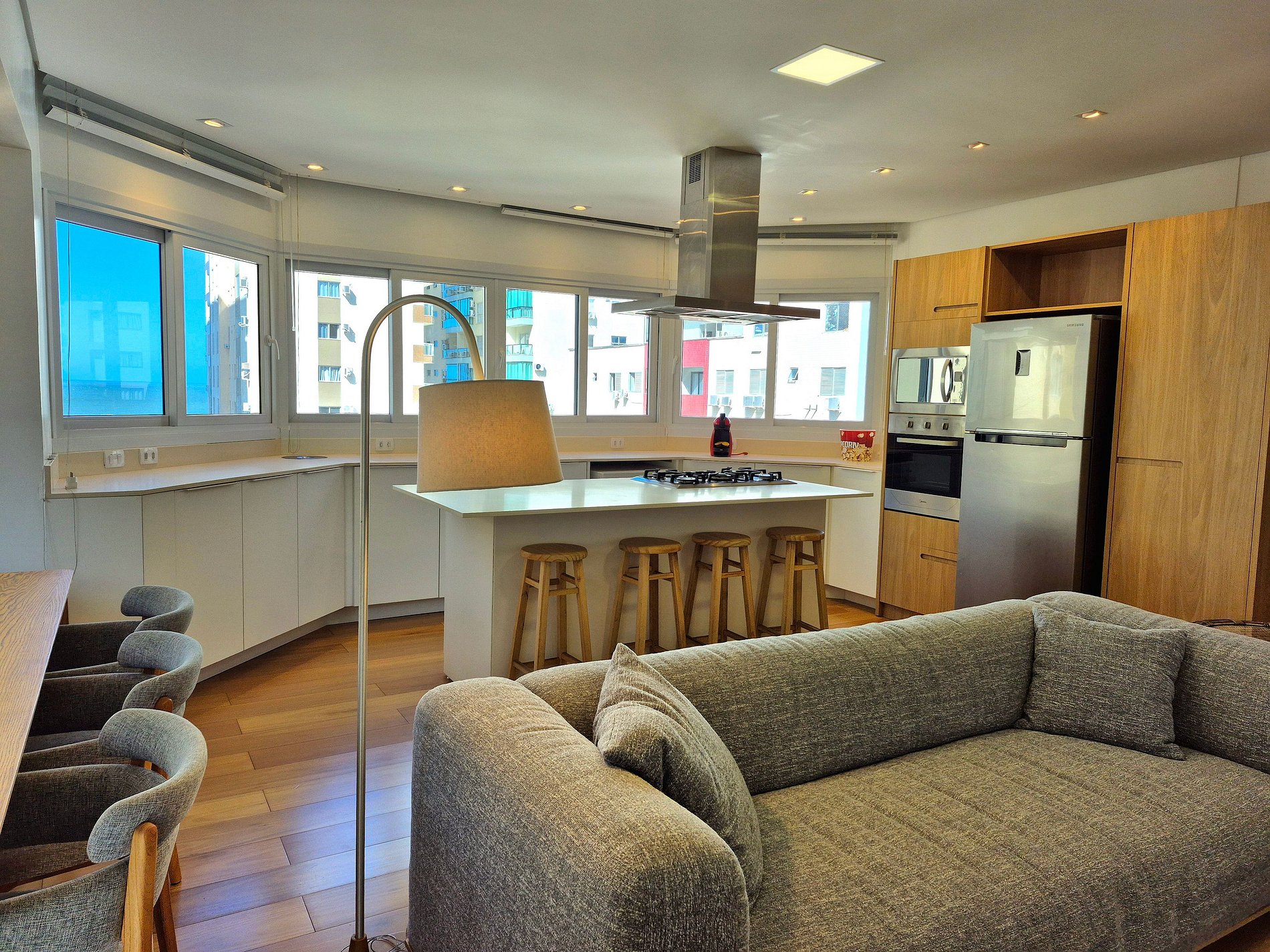 Caminhando é possível resolver necessidades do cotidiano pois estamos na quadra do mar, entre a Av. Brasil e Av. Atlântica. Em meio aos inúmeros comércios da região. Tais como mercados, restaurantes, pubs, bares, lojas diversas, salões de beleza, clínicas de estética, padarias, cafeterias, etc.
