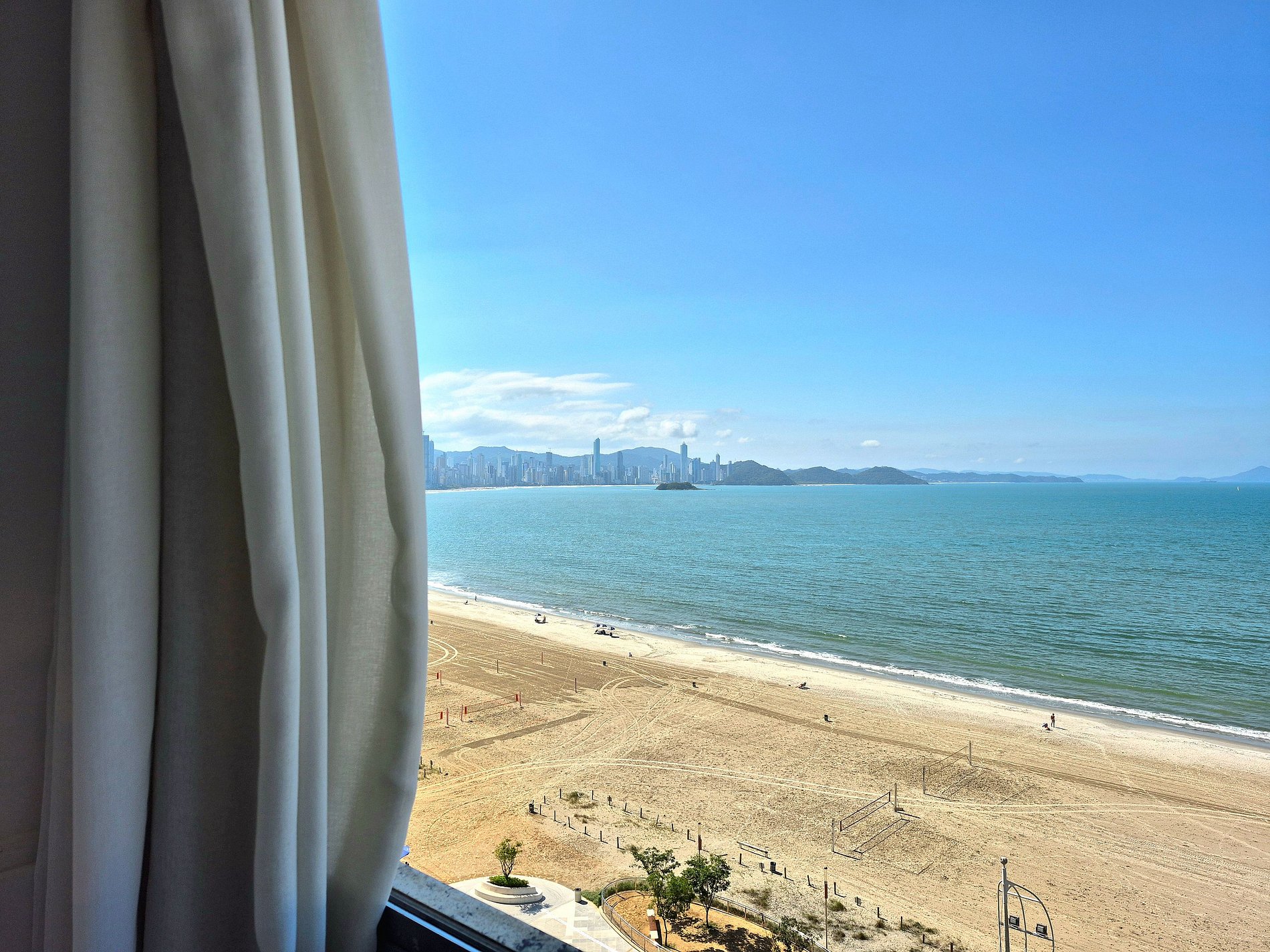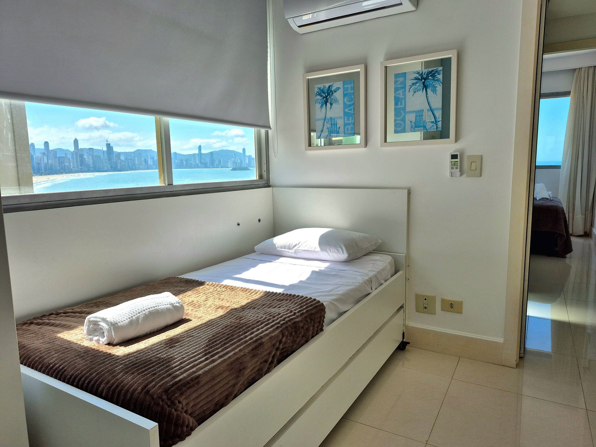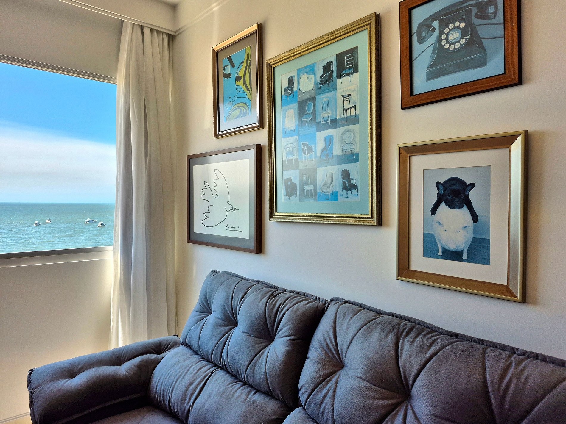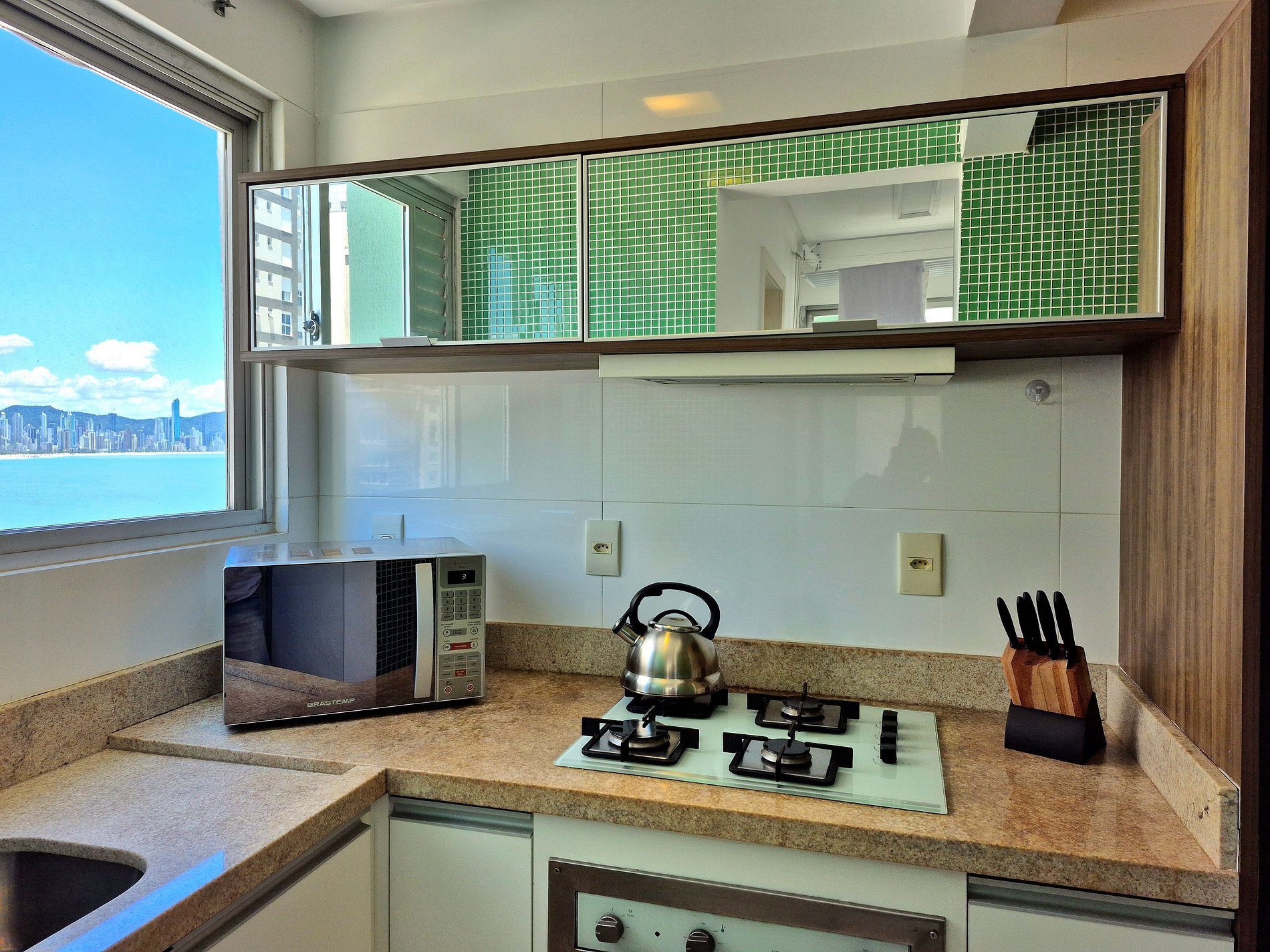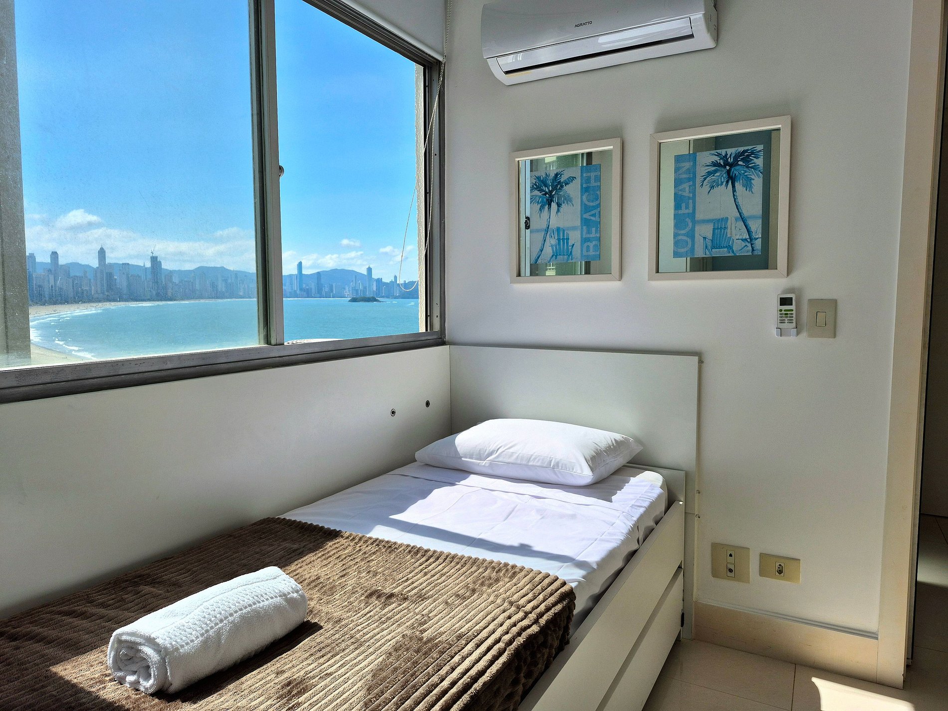 Vista mar na sala, nos quartos, até na cozinha! Apartamento na Barra Sul, em frente a Orla revitalizada de BC, 2 quartos e 2 banheiros. Cozinha compacta e completa com utensílios, sala de jantar e sala de estar com vista espetacular pra praia de BC! De frente pra Av. Atlântica, próximo à todas as comodidades do dia a dia e pontos turísticos para aproveitar as férias.