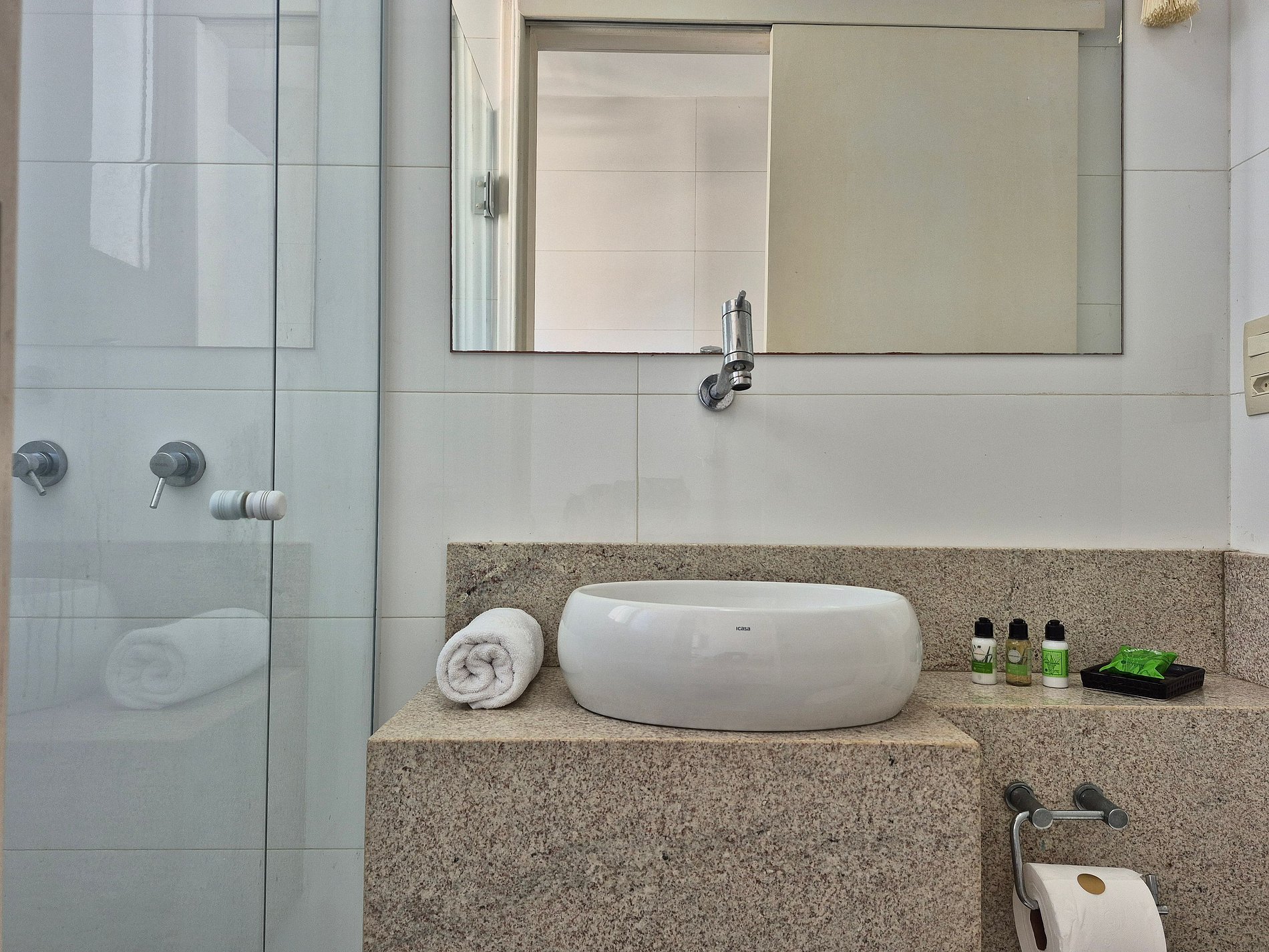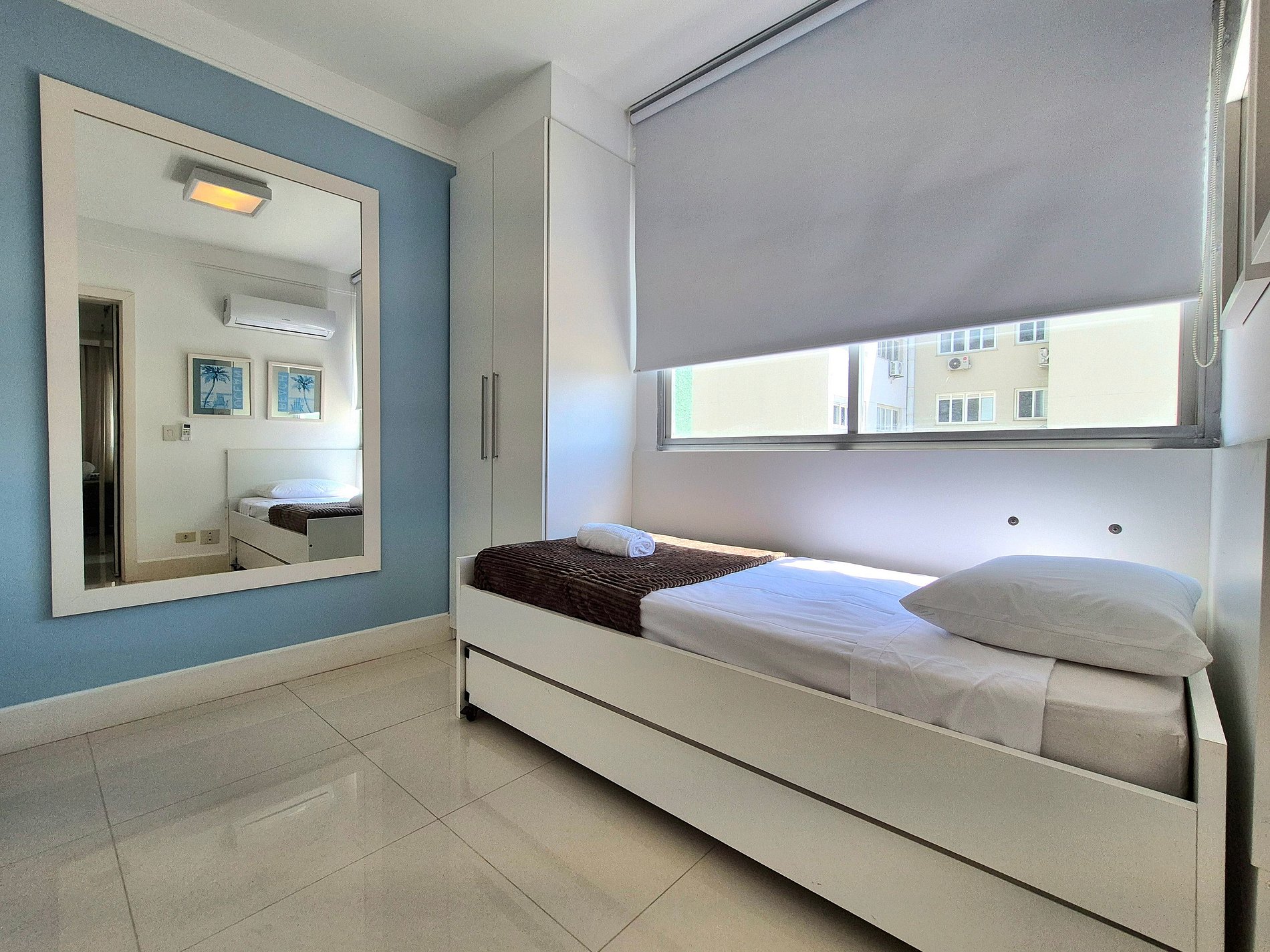 - 1 Quarto com cama de casal, cortina com black out, ar condicionado, guarda-roupas com espelho de corpo inteiro, enxoval completo de cama e banho;