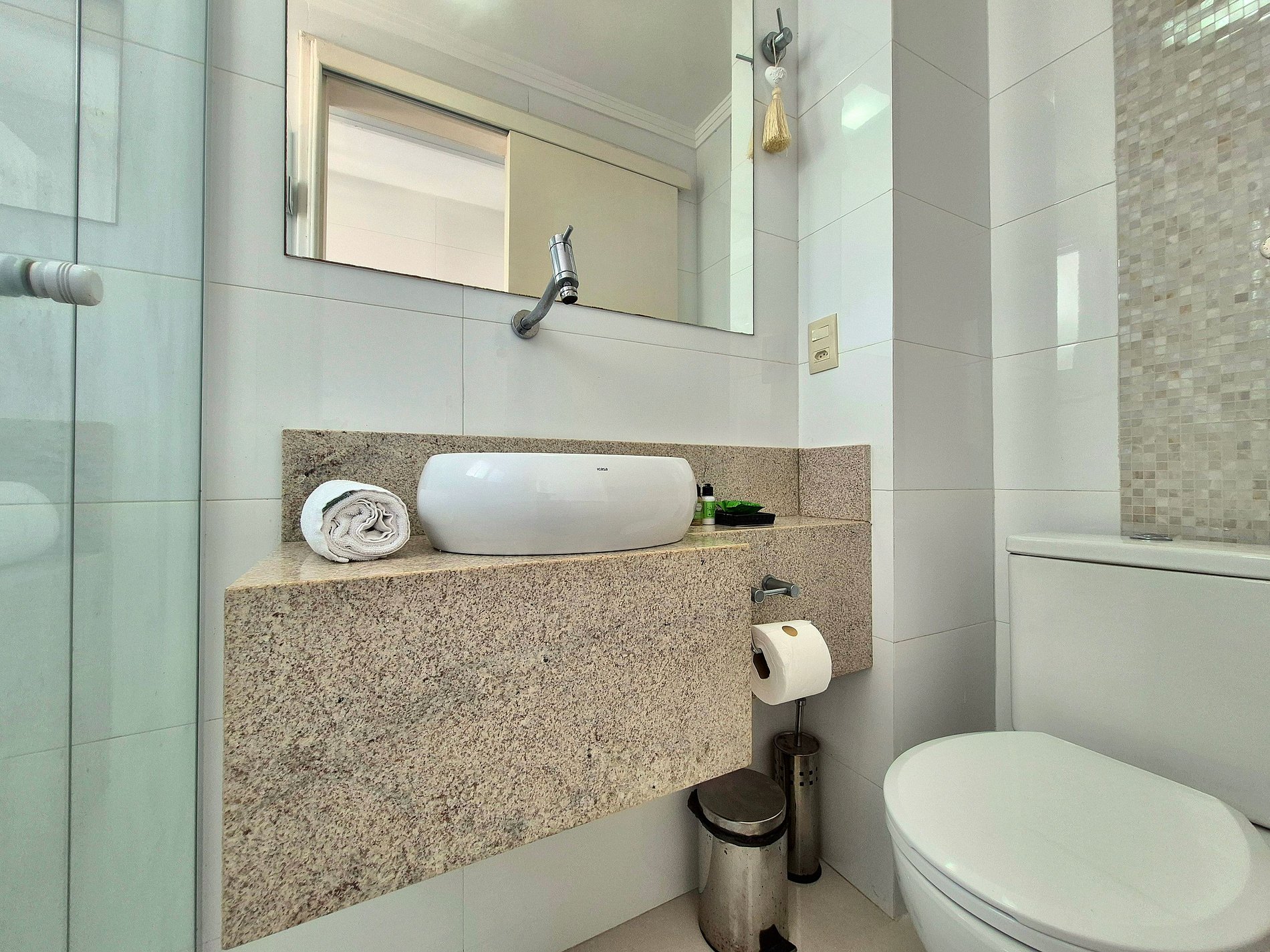 O apartamento possui 2 banheiros completos com chuveiro confortável - sistema a gás -.