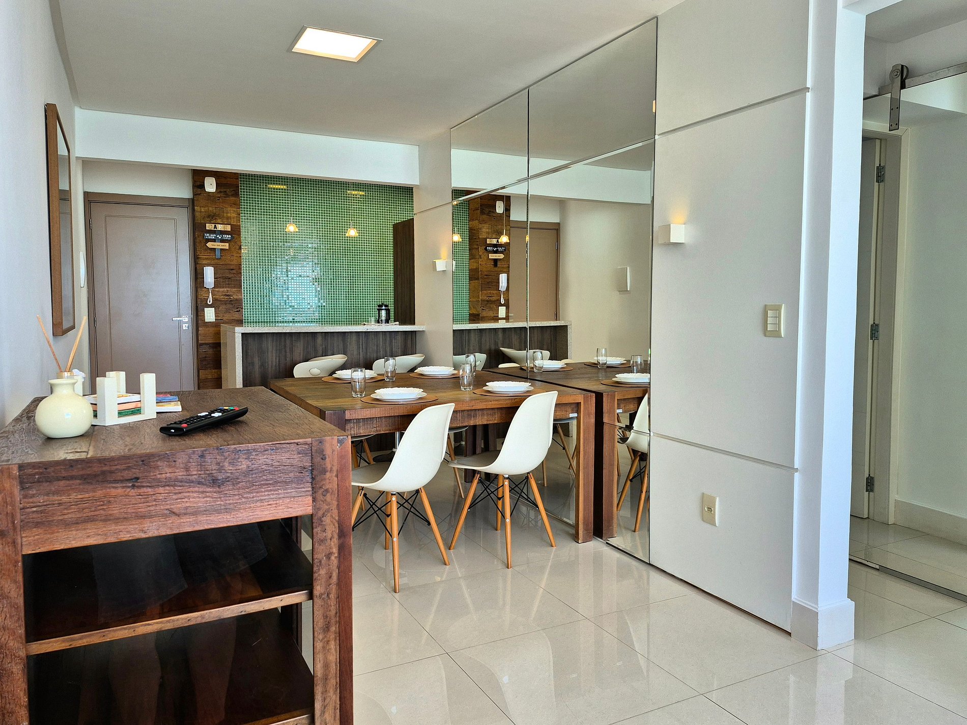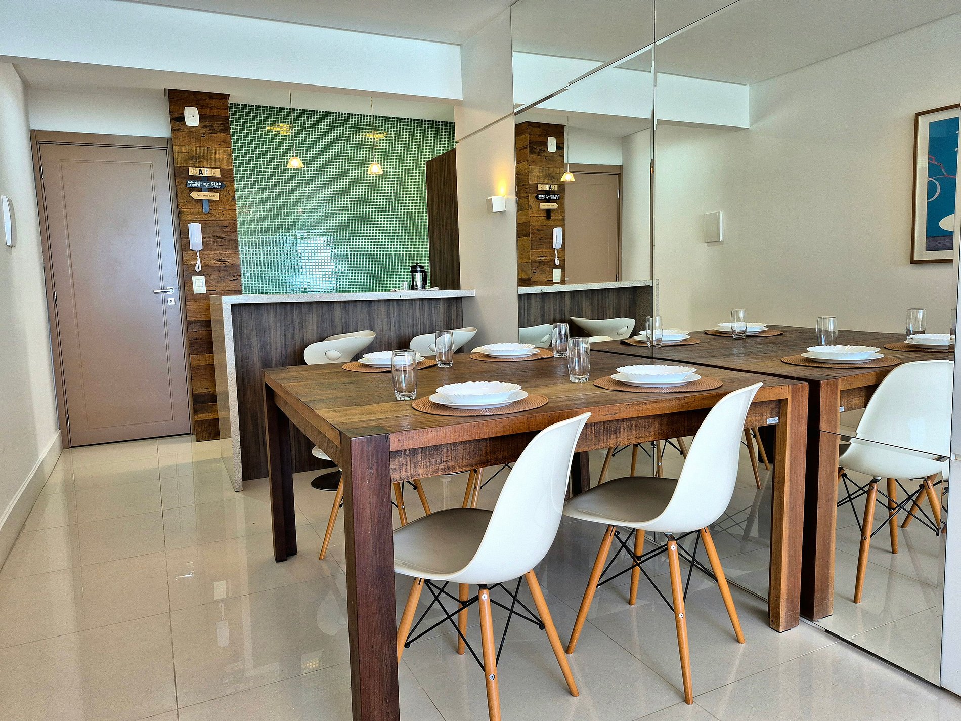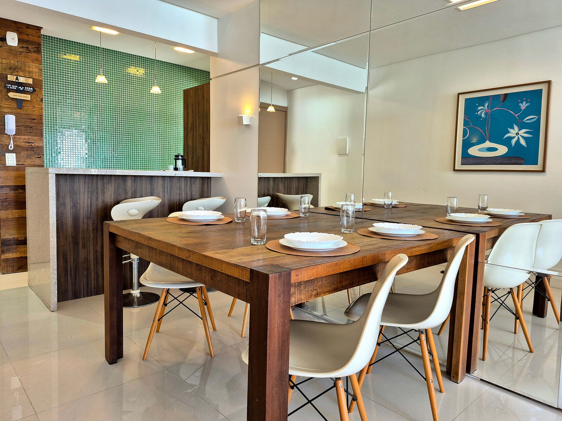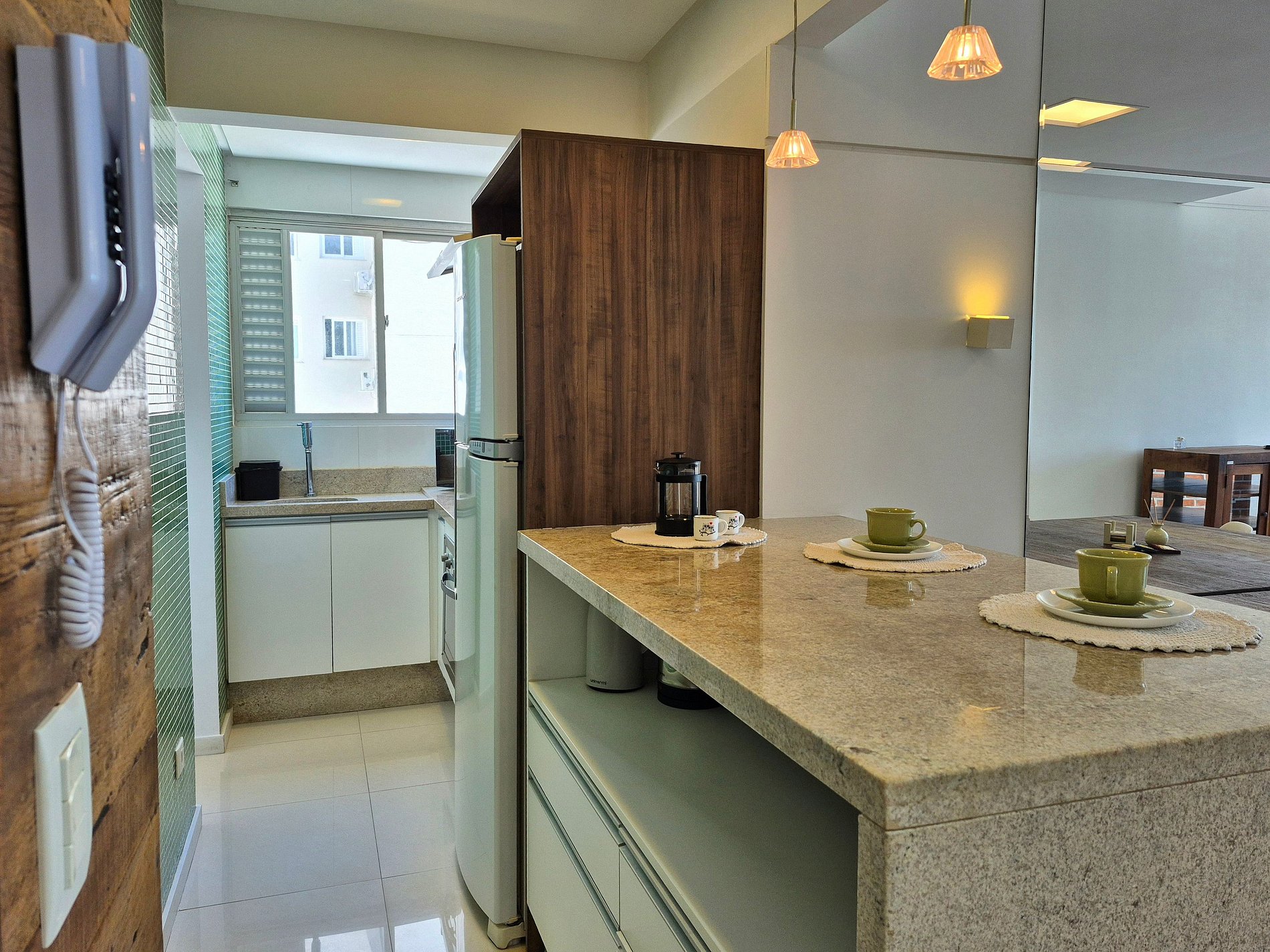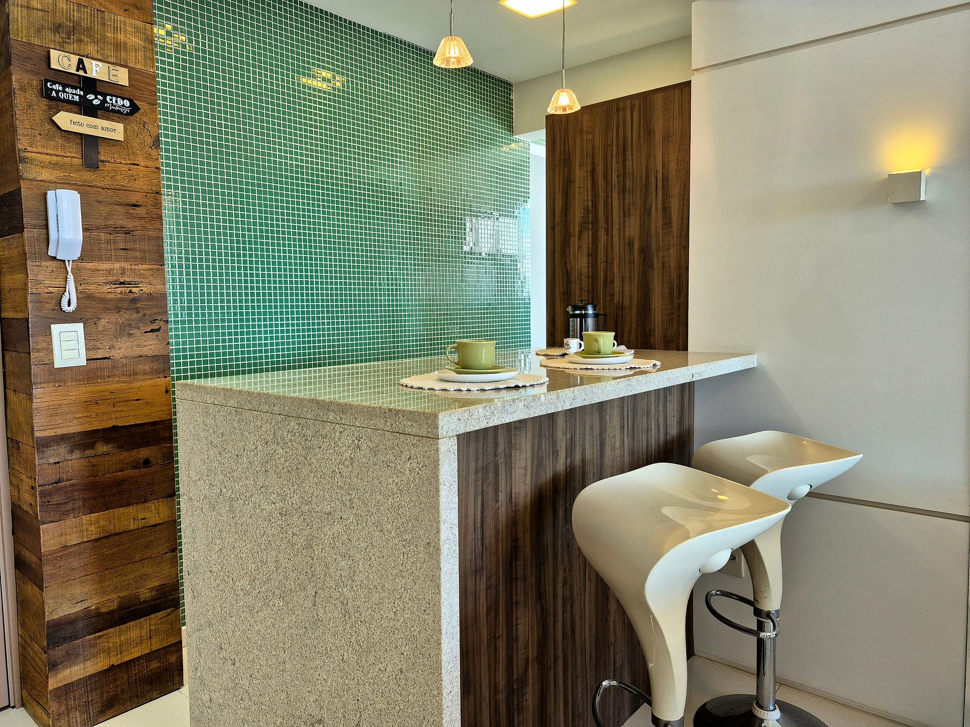 - Bancada de apoio que divide a cozinha e sala de jantar.