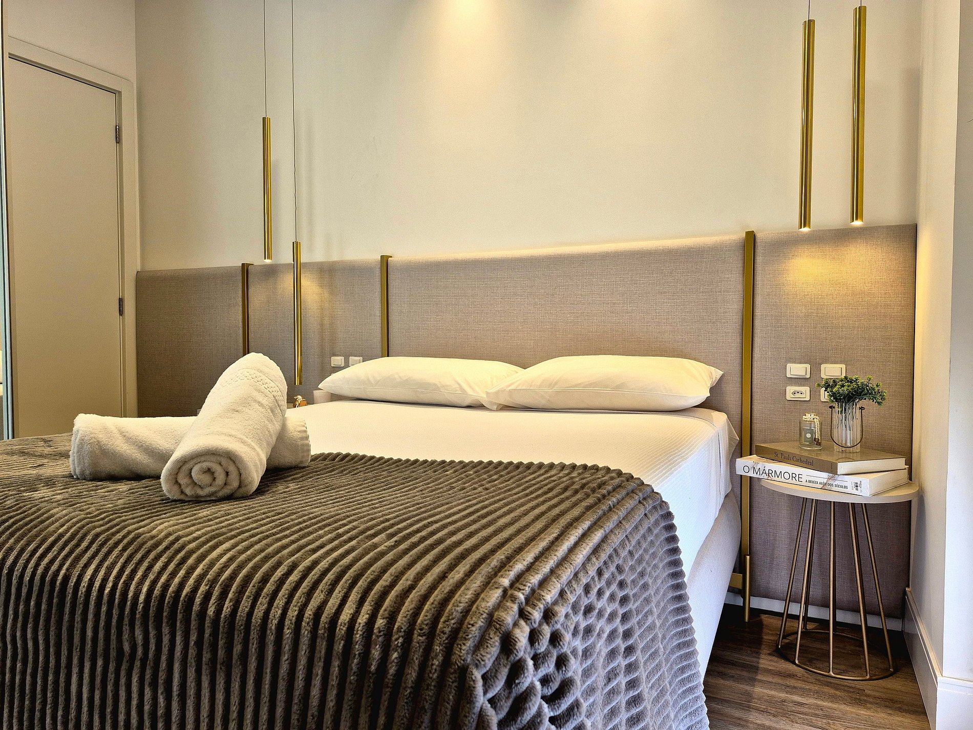 O apartamento conta com duas belas suítes muito bem planejadas! Uma das suítes destaca-se pelo acabamento em dourado, trazendo charme e requinte além do duplo chuveiro no banheiro.