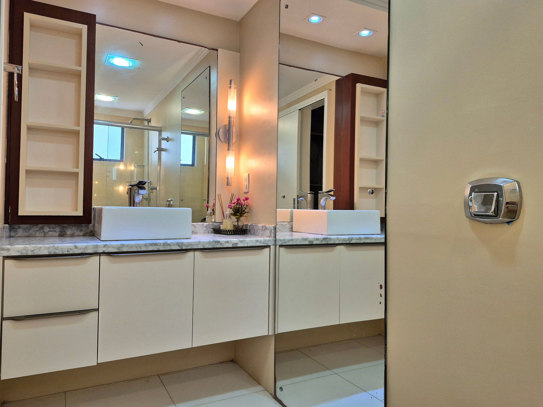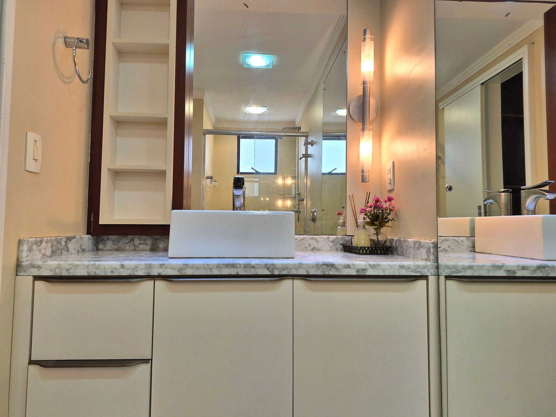 Extremamente amplo, nosso apartamento possui 3 suítes espaçosas e confortáveis. Você vai se surpreender com a decoração do banheiro de duas das nossas suítes, é de encantar a criançada!