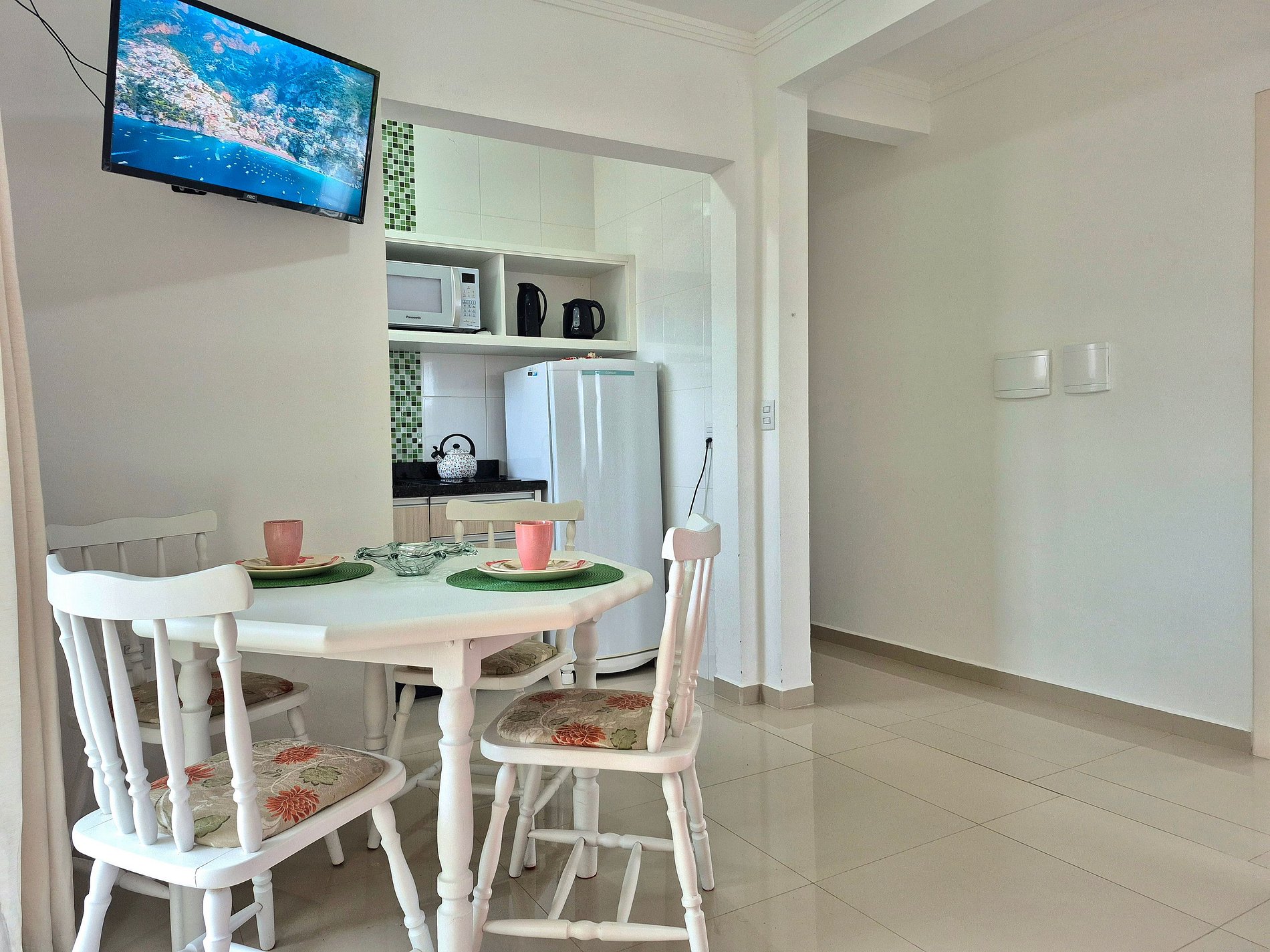 Nossa cozinha é completa com utensílios e a sala possui Smart TV, sofá e mais uma sacada, trazendo ventilação e iluminação pro ambiente!