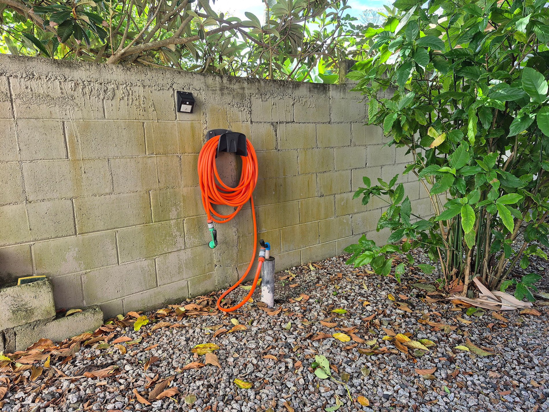 4. BANHISTAS: Tire o excesso de areia na mangueira localizada do lado do muro, próximo da nossa árvore.