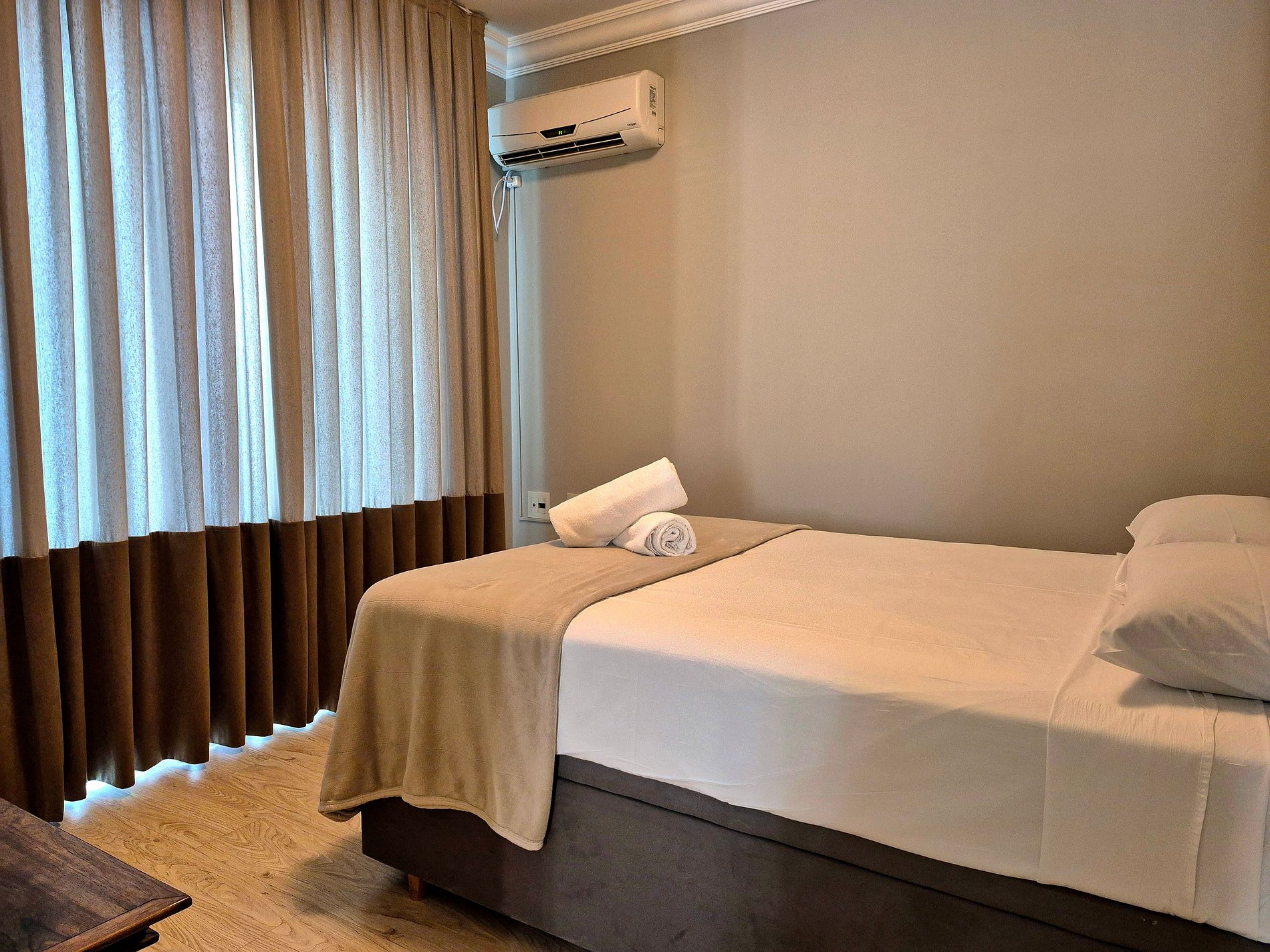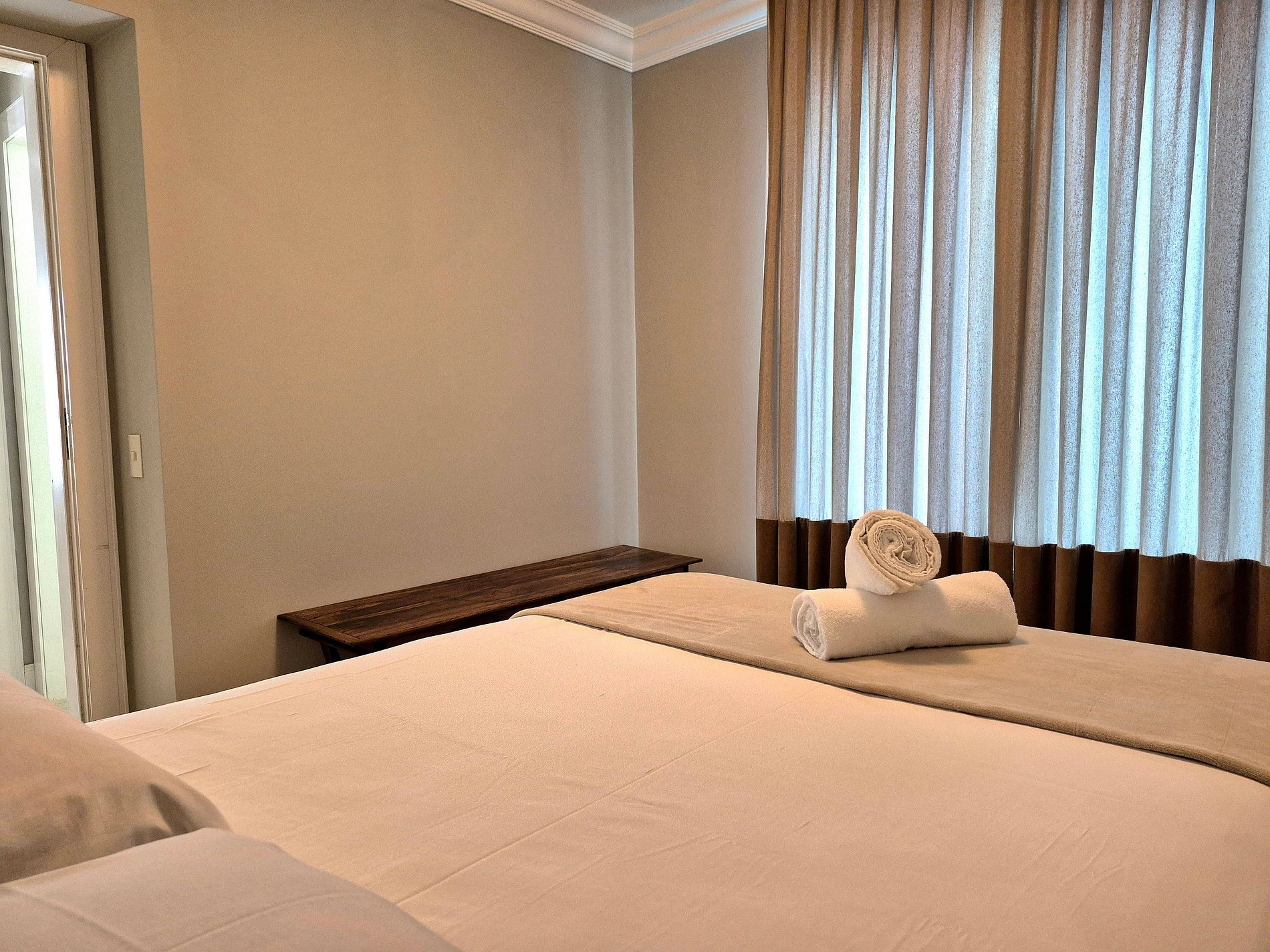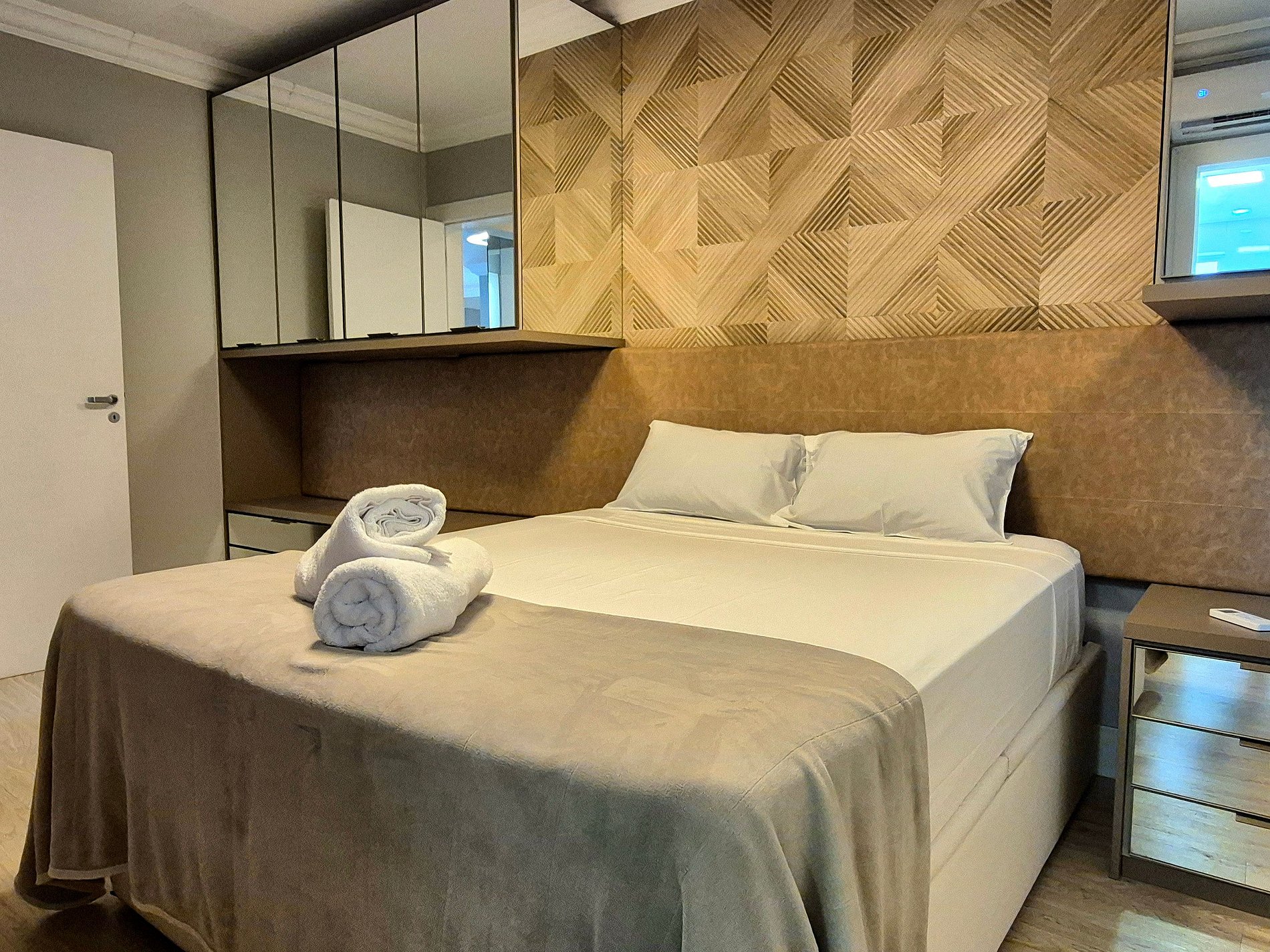 Todos os cômodos são amplos e confortáveis. Uma suíte com Smart TV, um quarto com cama de casal, closet enorme com penteadeira iluminada, trazendo mais conforto na hora de se vestir e arrumar para aproveitar a cidade, ou servindo para quarto com colchão de solteiro. Esse apartamento é perfeito para 4 pessoas em camas mas acomoda até 6, sendo estas acomodadas em 2 colchões de solteiro. Lembrando que em nosso closet é possível acomodar um colchão de solteiro tranquilamente, uma vez que neste cômodo também temos ar condicionado.