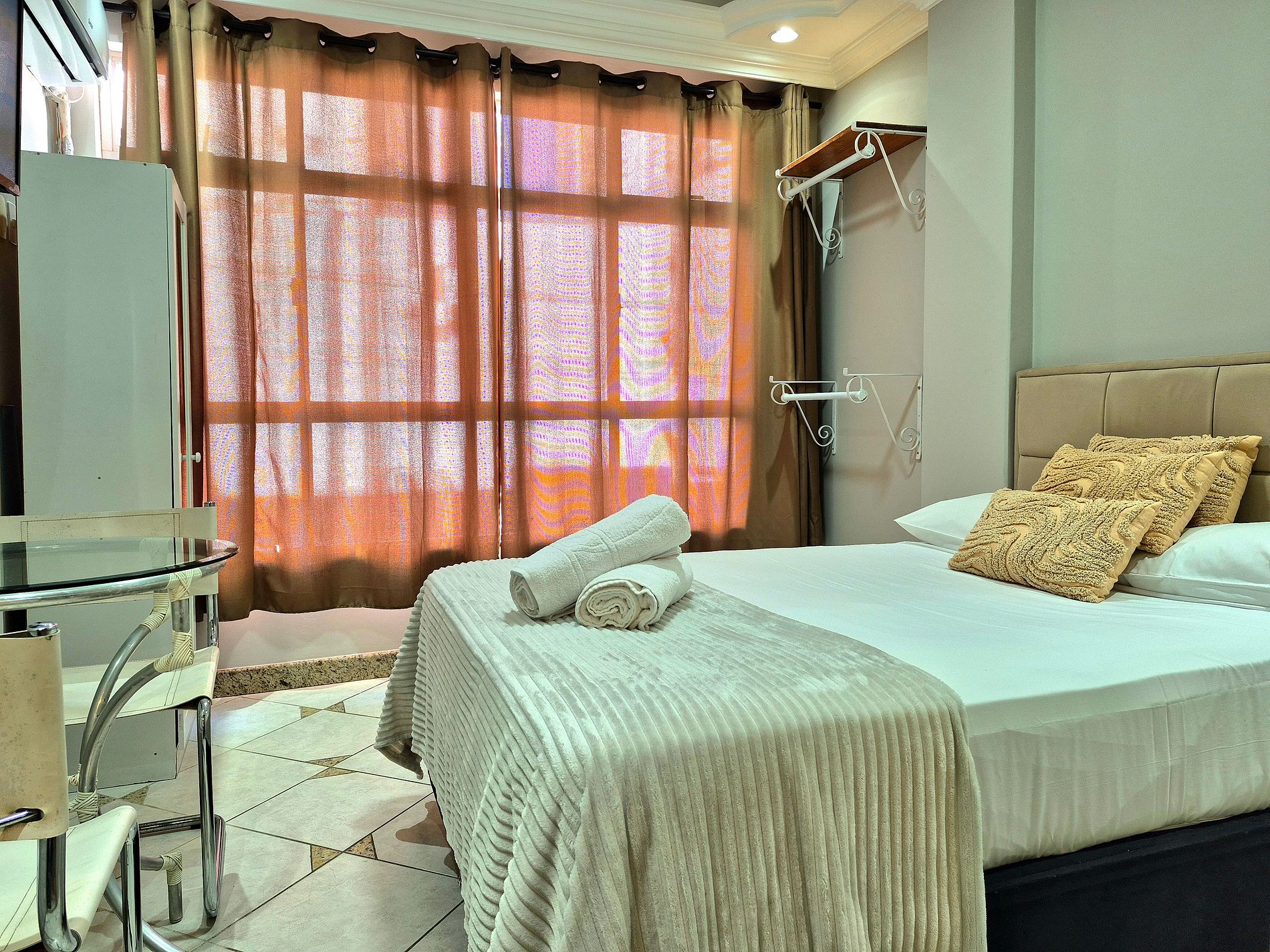 3. CUIDADO COM ENXOVAL DE CAMA E BANHO: Favor proceder com a retirada de maquiagem e produtos corporais adequadamente, evitando manchar fronhas e lençol. Caso houver manchas que danifiquem o material, será cobrado a parte.