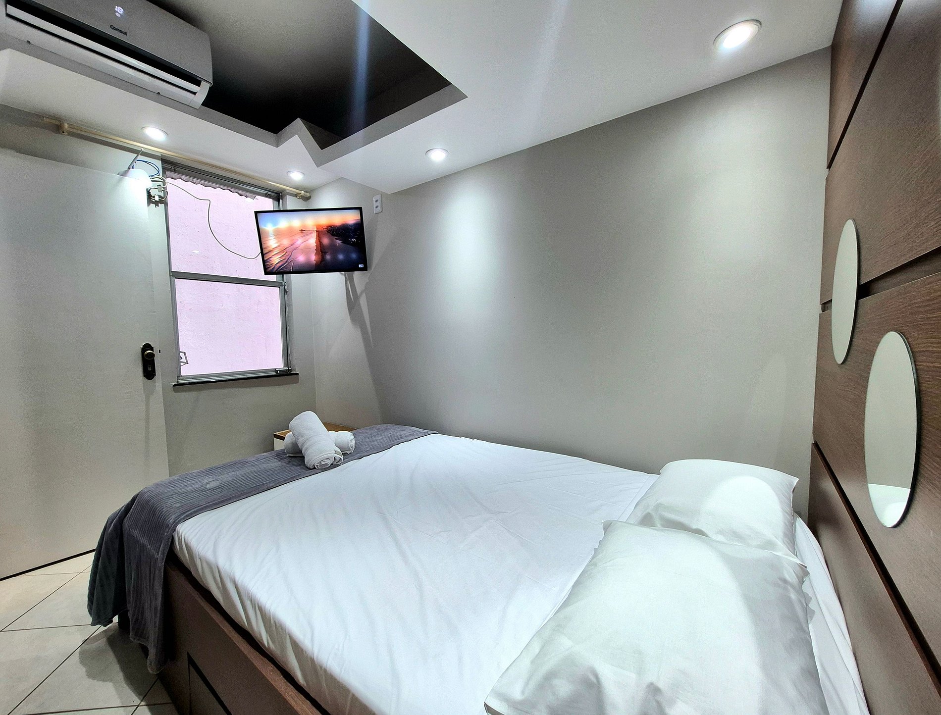 Confortável, funcional e simples. Nosso apartamento acomoda muito bem até 4 pessoas. Estas em cama de casal nos quartos com ar condicionado. Um dos nossos quartos tem janela com vista para Av. Brasil, além de ambos possuírem TV Smart.