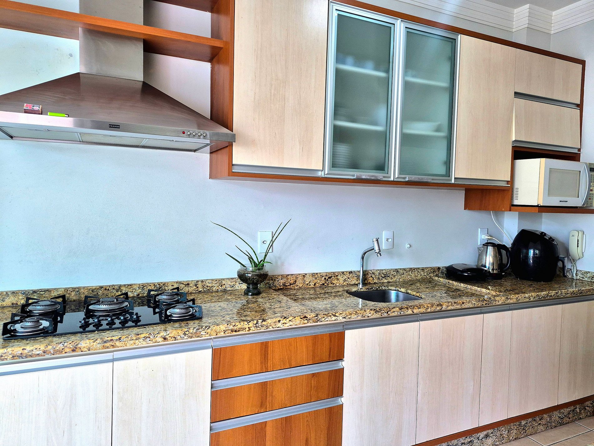Temos todos os utensílios necessários para cozinhar suas refeições e também temos eletrodomésticos para suprir as necessidades do dia a dia. Cozinha completa com bancada para melhor servir os alimentos e sala de jantar com capacidade para acomodar todos com conforto. Também temos lavanderia com máquina de lavar roupa, facilitando sua estadia.