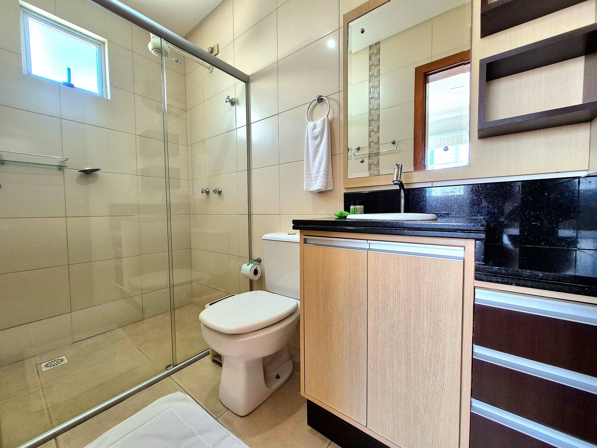 Quanto às praias: a Praia Central é quase porta afora; a Praia de Laranjeiras exige ~15–20 min de deslocamento com bondinho ou se preferir pode passear pela Interpraias e conhecer outras opções, tanto de praias quanto restaurantes; e a Praia dos Amores está a ~15 min de carro.