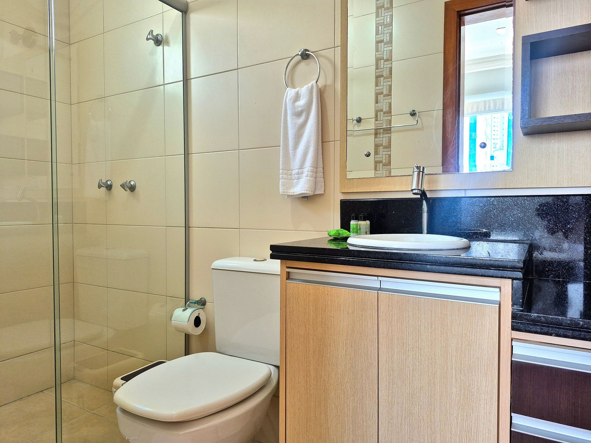 Para lazer: a Big Wheel está praticamente ao lado, entre 5 min a pé; a Aventura Jurássica (Complexo Cyro Gevaerd) fica a cerca de 3–4 km (~10 min); e restaurantes e pubs na Avenida Atlântica ou Barra Sul estão a poucos minutos a pé.