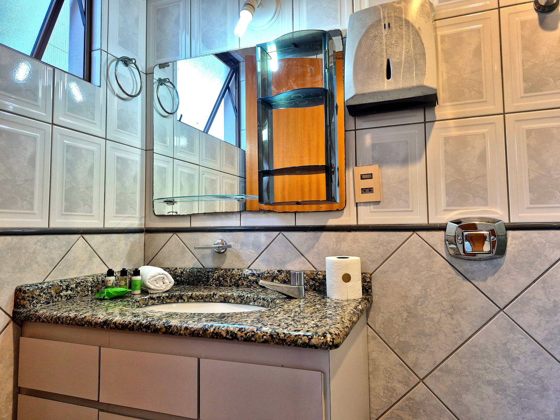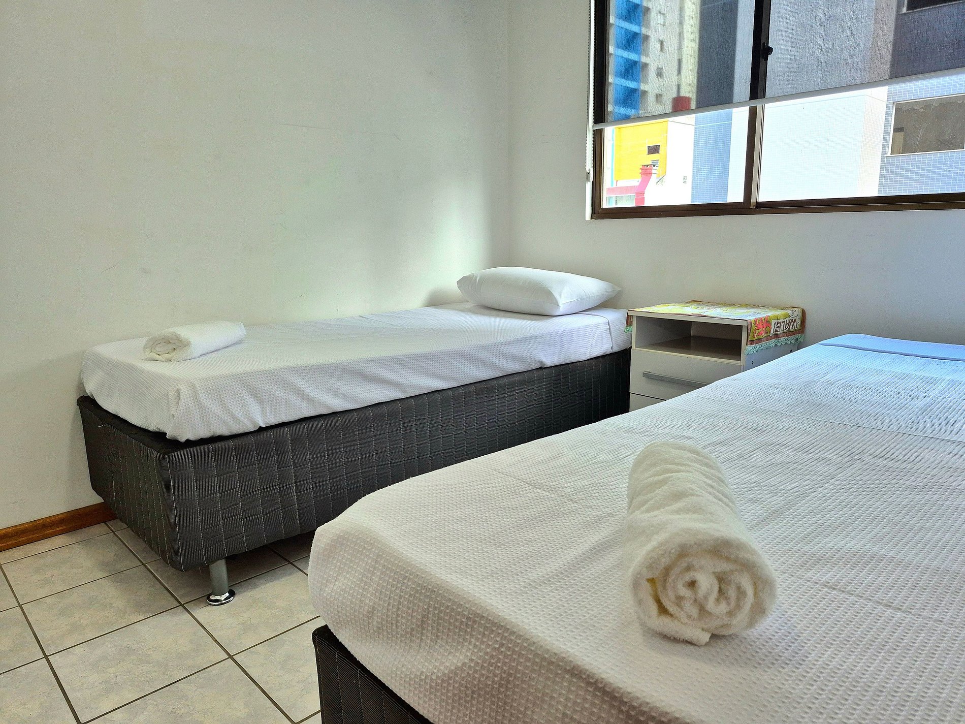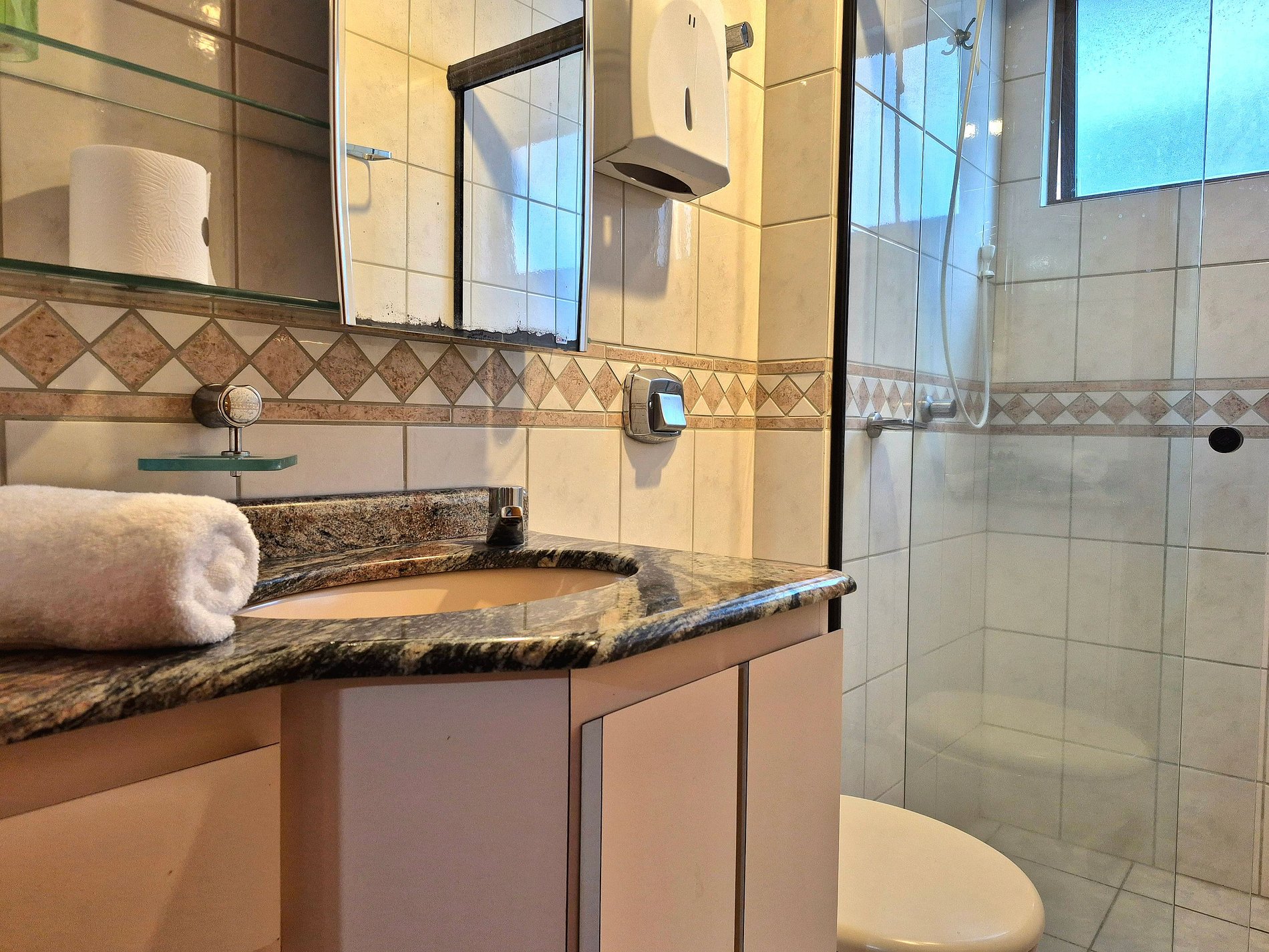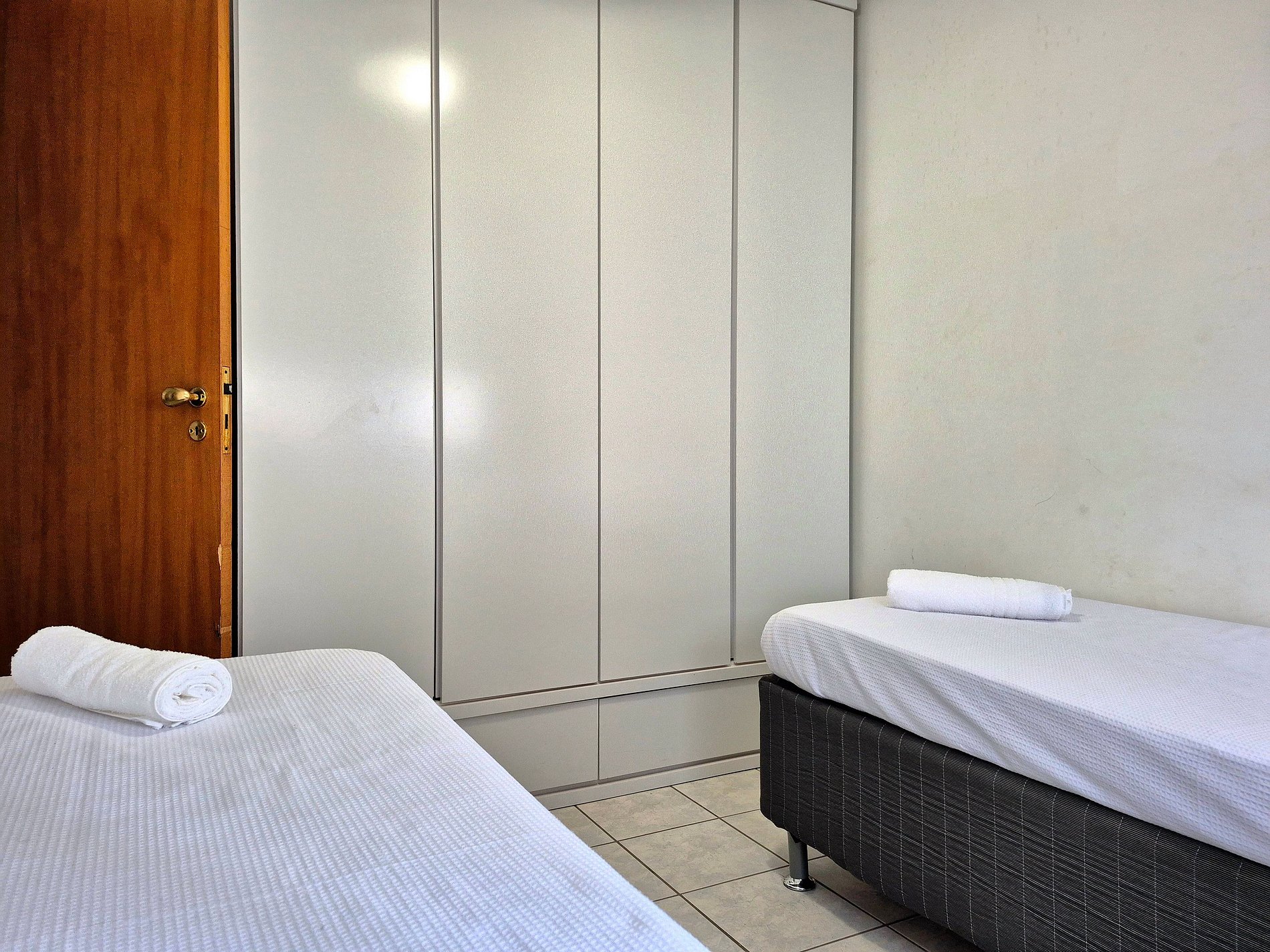 Contamos com uma suíte com cama de casal e mais um quarto com duas camas de solteiro. Temos um banheiro completo além do banheiro da suíte.