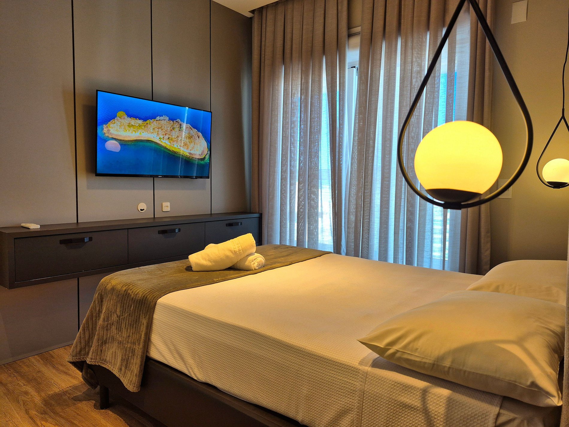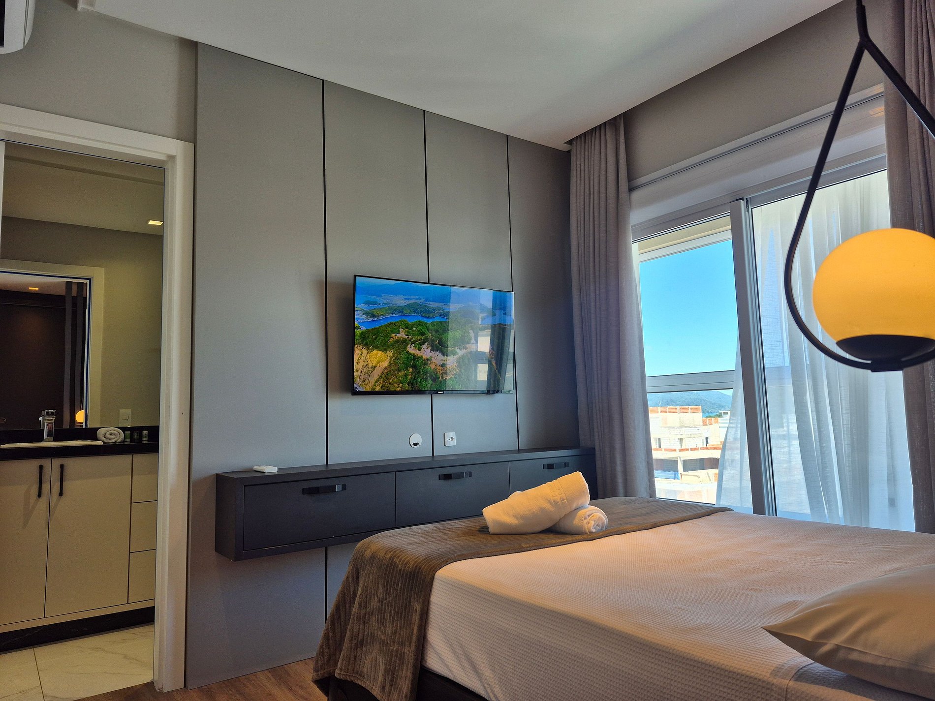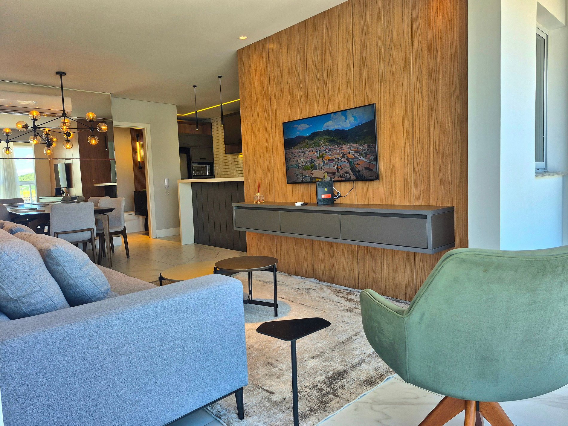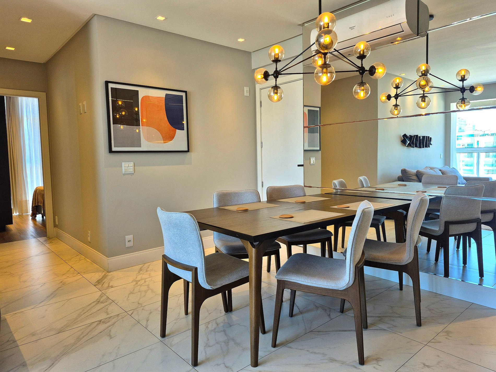Apartamento novo, planejado e decorado. São 2 suítes de casal, um lavabo, cozinha gourmet completa. Sala de jantar e sala de estar. Em localização privilegiada na praia Brava, próximo aos principais restaurantes da região com vista para o mar, a poucos metros da areia da praia Brava!