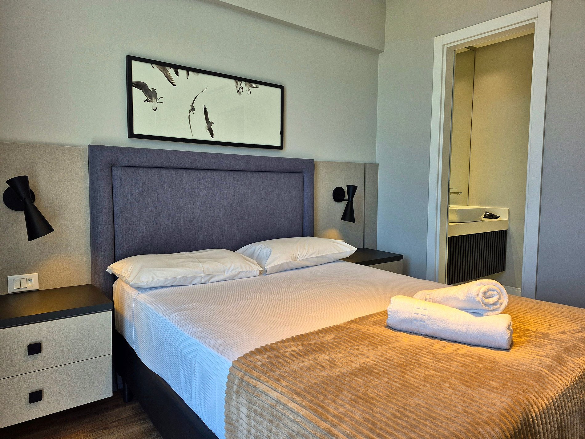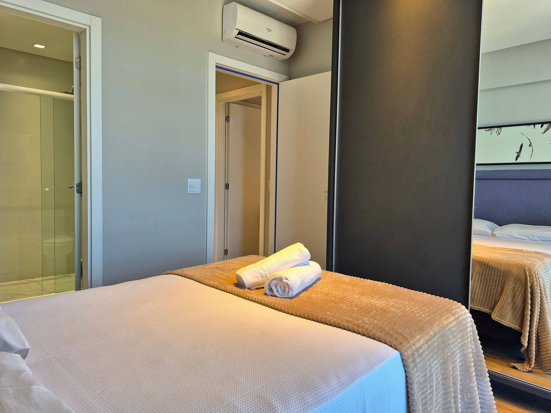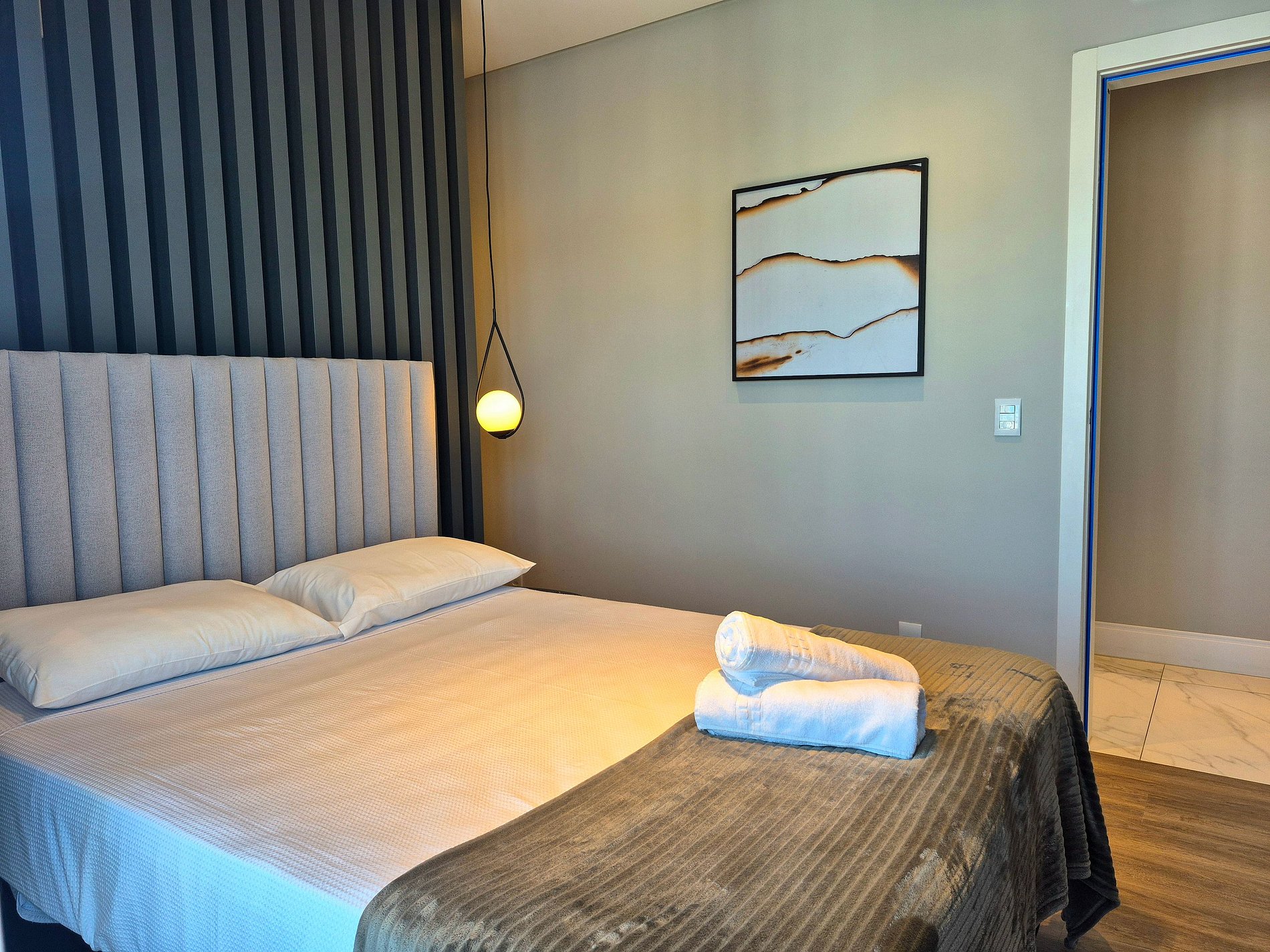 Nosso apartamento possui vista permanente para o mar, amplo, arejado, confortável, elegante e aconchegante. Com TV Smart e ar condicionado nas suítes e na sala, aquecimento a gás, armários planejados. Duas suítes com camas de casal, armários espaçosos e banheiro confortável.