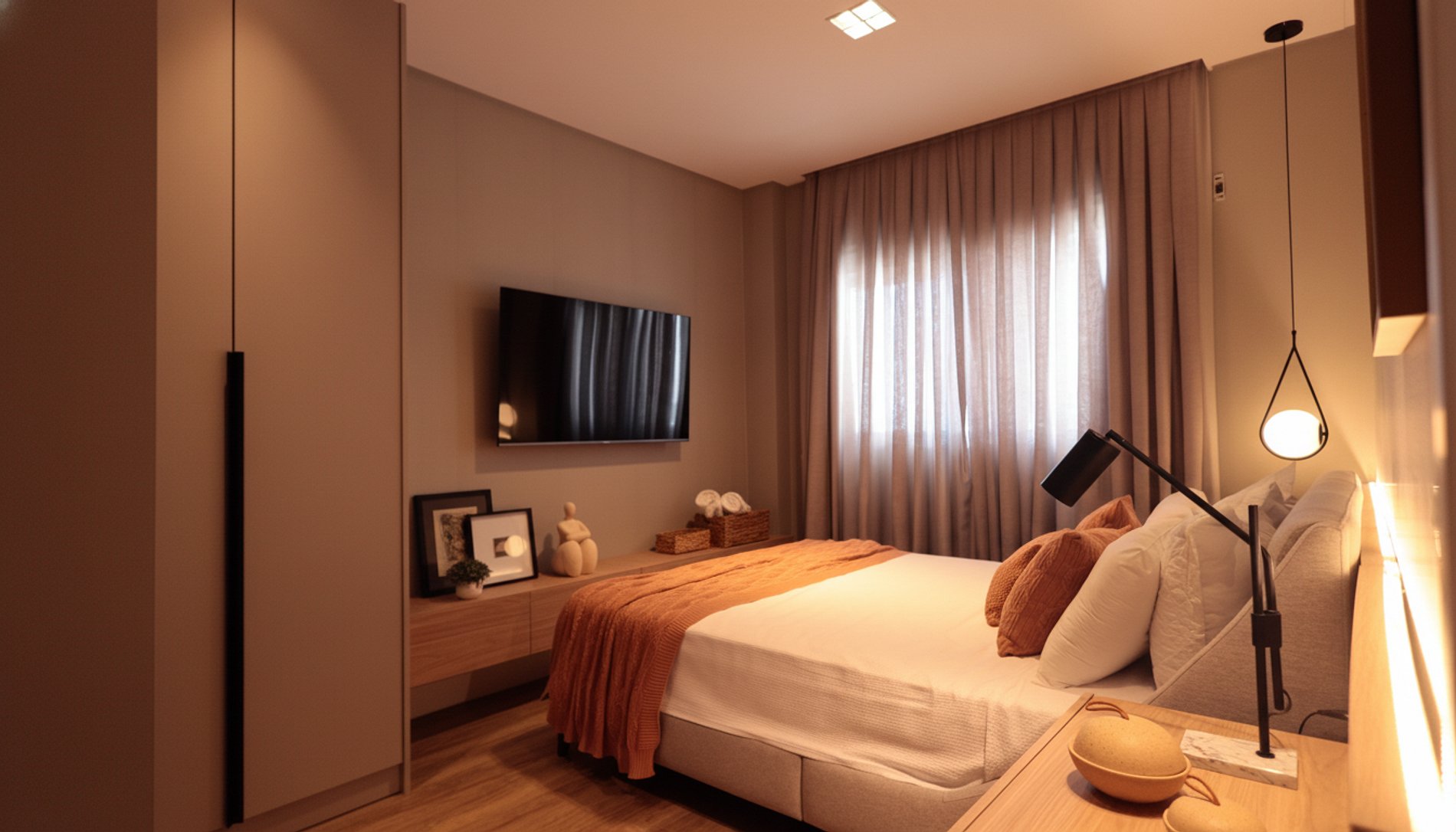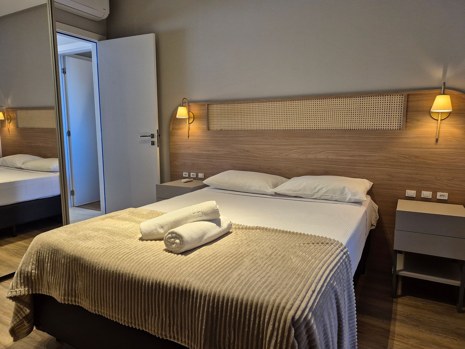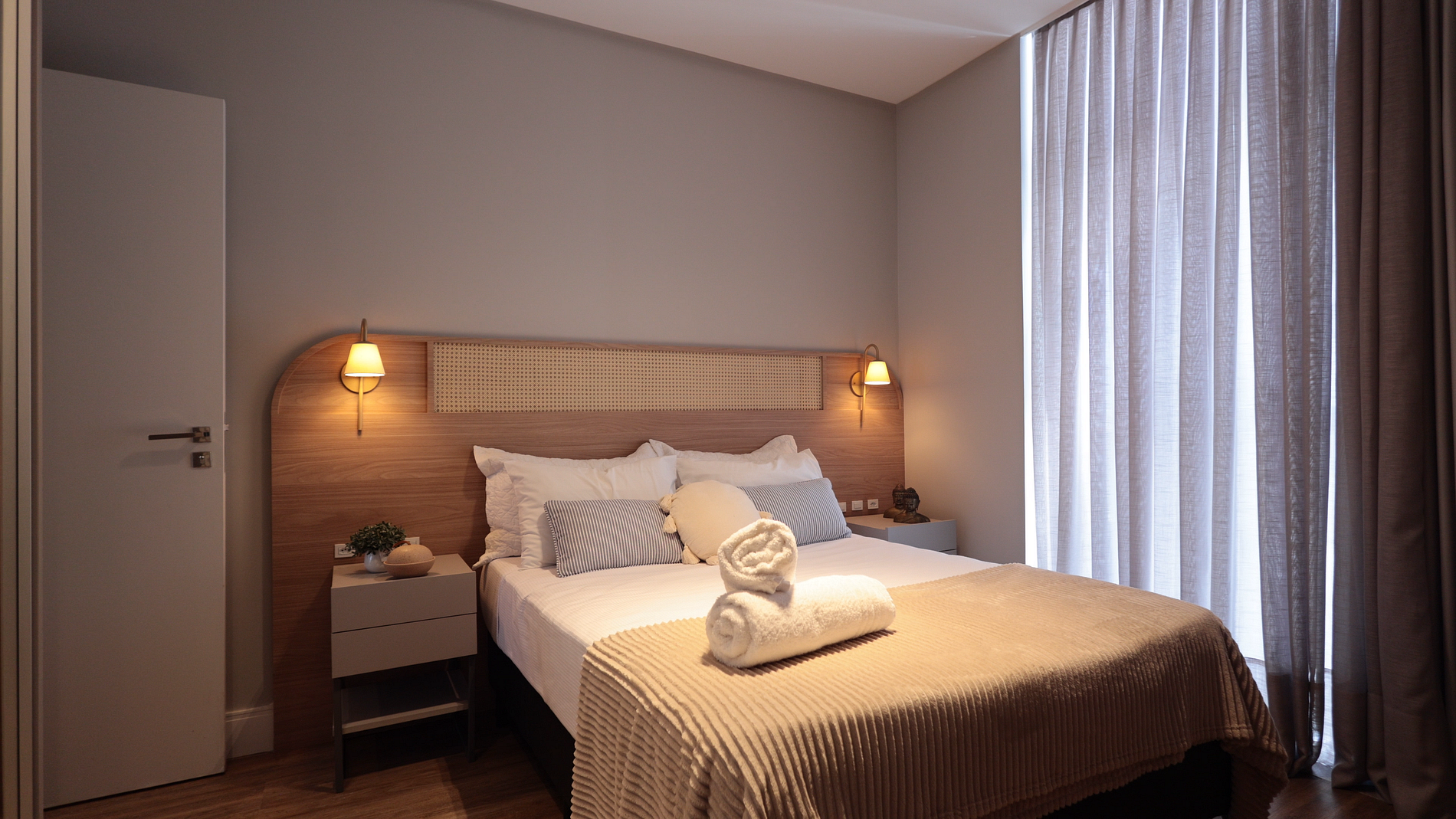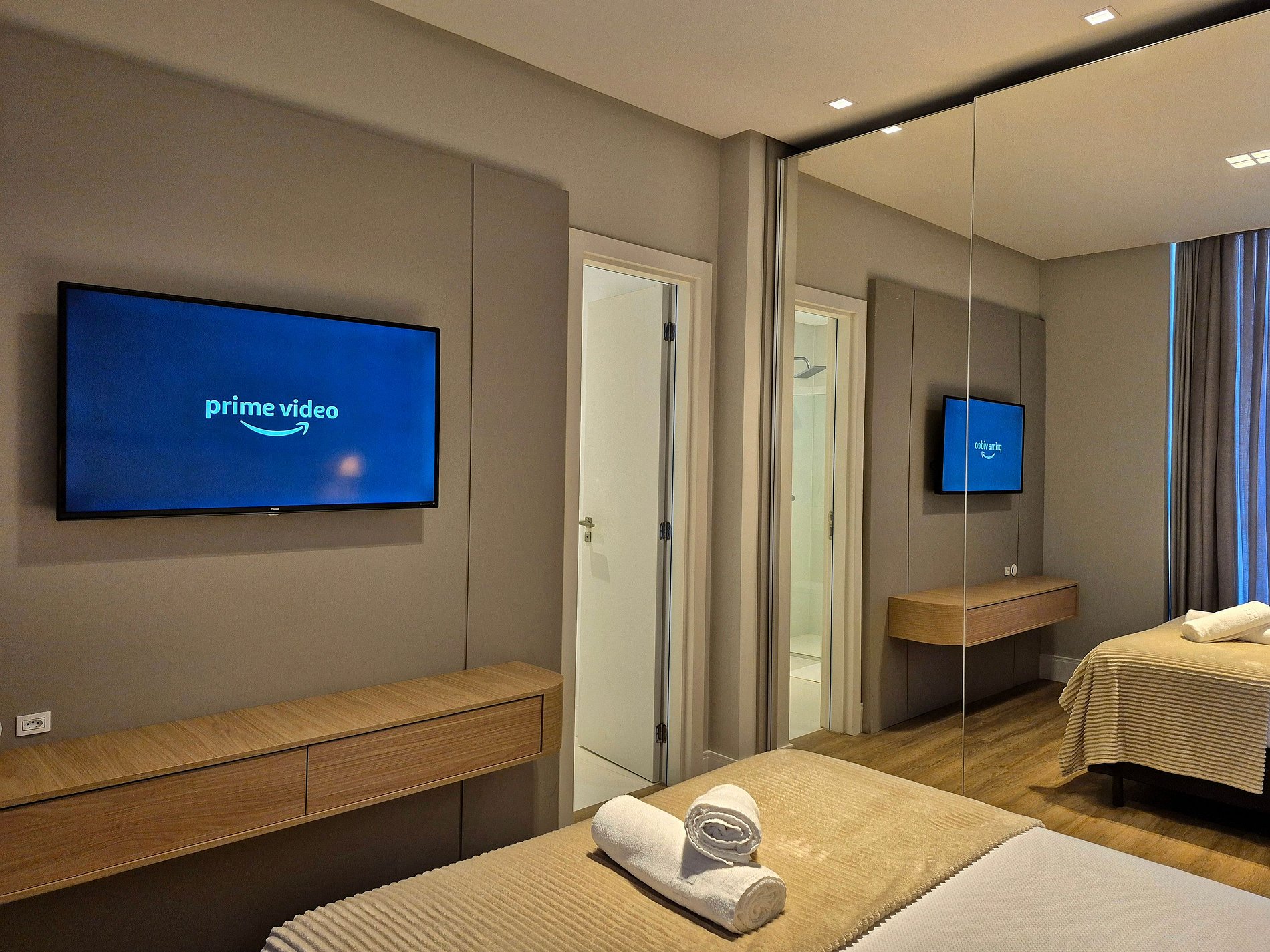 Desfrute da Praia Brava em um apartamento sofisticado, a poucos metros do mar, em condomínio de alto padrão. São 2 suítes confortáveis, ambas com cama de casal, armário, ar-condicionado e Smart TV, garantindo privacidade e comodidade.