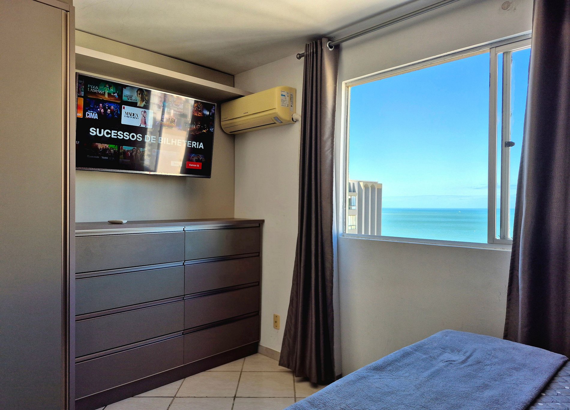 Nosso apartamento conta com dois quartos, sendo um com cama King Size e outro com cama de casal. Armários amplos para guardar seus pertences durante a estadia e um de nossos quartos possui vista para o mar e Smart TV, ambos possuem ar condicionado.
