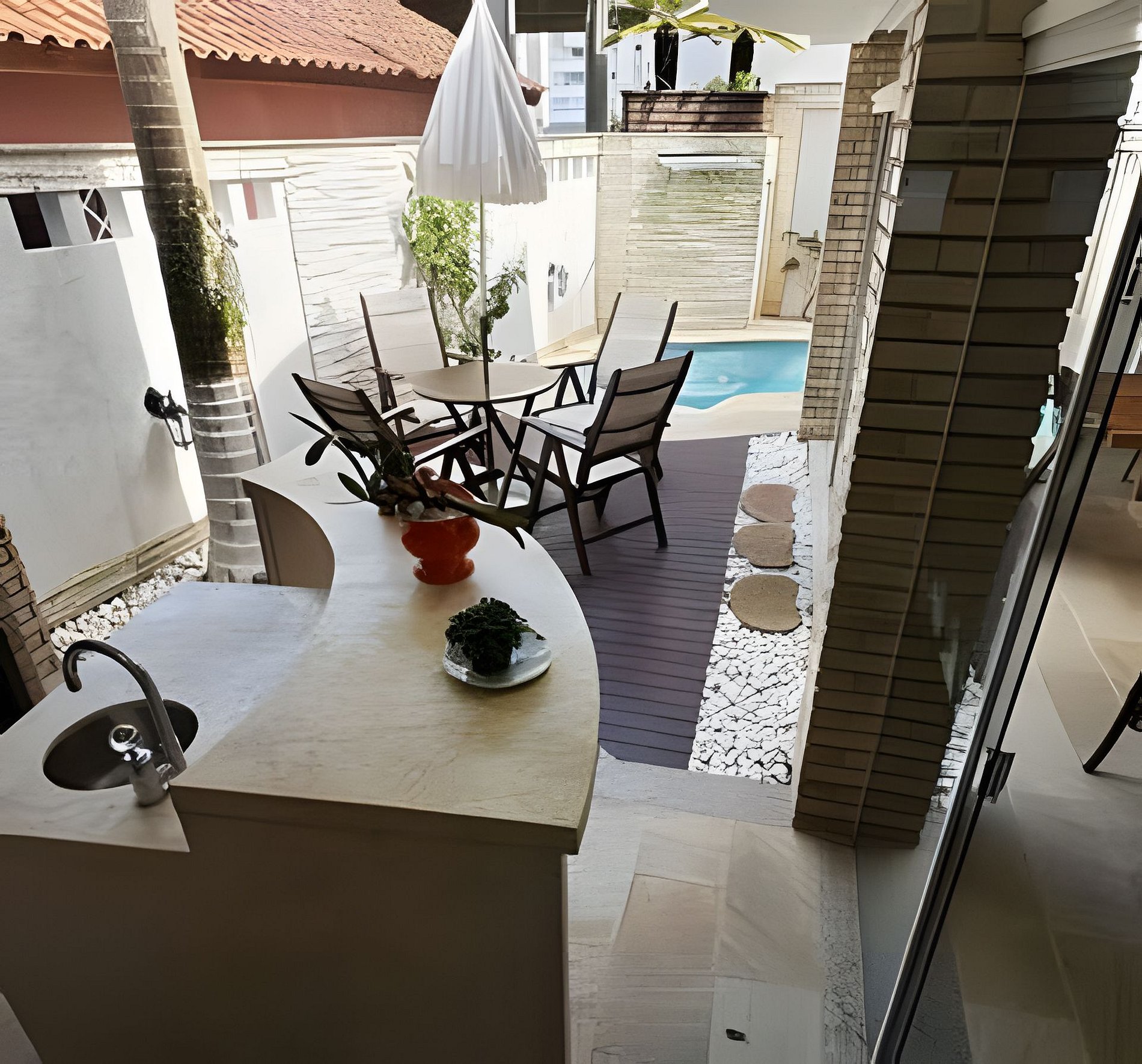 Tenha sua casa de férias em Balneário Camboriú, com piscina, cozinha gourmet, quartos confortáveis e ar condicionado, em local tranquilo e seguro, ao lado da natureza, a poucos metros da roda Gigante na agitada Barra Norte. A Casa Laranja está em uma rua tranquila ao lado da Estrada da Rainha, que dá acesso à badalada Praia Brava. Também está a 5 minutos do complexo do Morro do Careca. Para quem gosta de natureza é um prato cheio: Por ali está a trilha da Praia do Buraco, que chega ao Deck do Pontal Norte, onde está a famosa Roda Gigante Big Wheel. Encontre também: Restaurante Aragon (melhor vista de Balneário Camboriú), Amaité (melhor beach club de BC), KM Bebidas e The Market (conveniências e mercados). Faça tudo caminhando. Acesso pela rua Miguel Matti. 35 km do Aeroporto Internacional de Navegantes. 99 km do Aeroporto Internacional de Florianópolis Tenha sua casa de férias em Balneário Camboriú, com piscina, cozinha gourmet, quartos confortáveis e ar condicionado, em local tranquilo e seguro, ao lado da natureza, a poucos metros da roda Gigante na agitada Barra Norte. Outras observações A Casa Laranja está situada em um dos primeiros bairros de Balneário Camboriú. Fica no final de uma rua sem saída, bastante segura, com vegetação abundante, vizinhança tranquila e silenciosa. Piso térreo * Garagem para 4 carros * Sala ampla, com cozinha gourmet bem equipada integrada * Sala de TV * Bar * Quarto com duas camas de solteiro * Banheiro * Lavanderia completa Área Externa * Piscina com cascata * Churrasqueira * Forno de Pizza * Fogão à lenha * Rede de descanso * Mesa com ombrelone Piso Superior * Suíte com varanda - Cama Queen - Ar condicionado - Banheiro completo * Dois quartos com banheiro integrado (demi suite) - Cama Queen - Cama Queen - Ar condicionado - Banheiro completo * Acesso para área externa (solarium) - Escada para área de lazer (piso térreo)