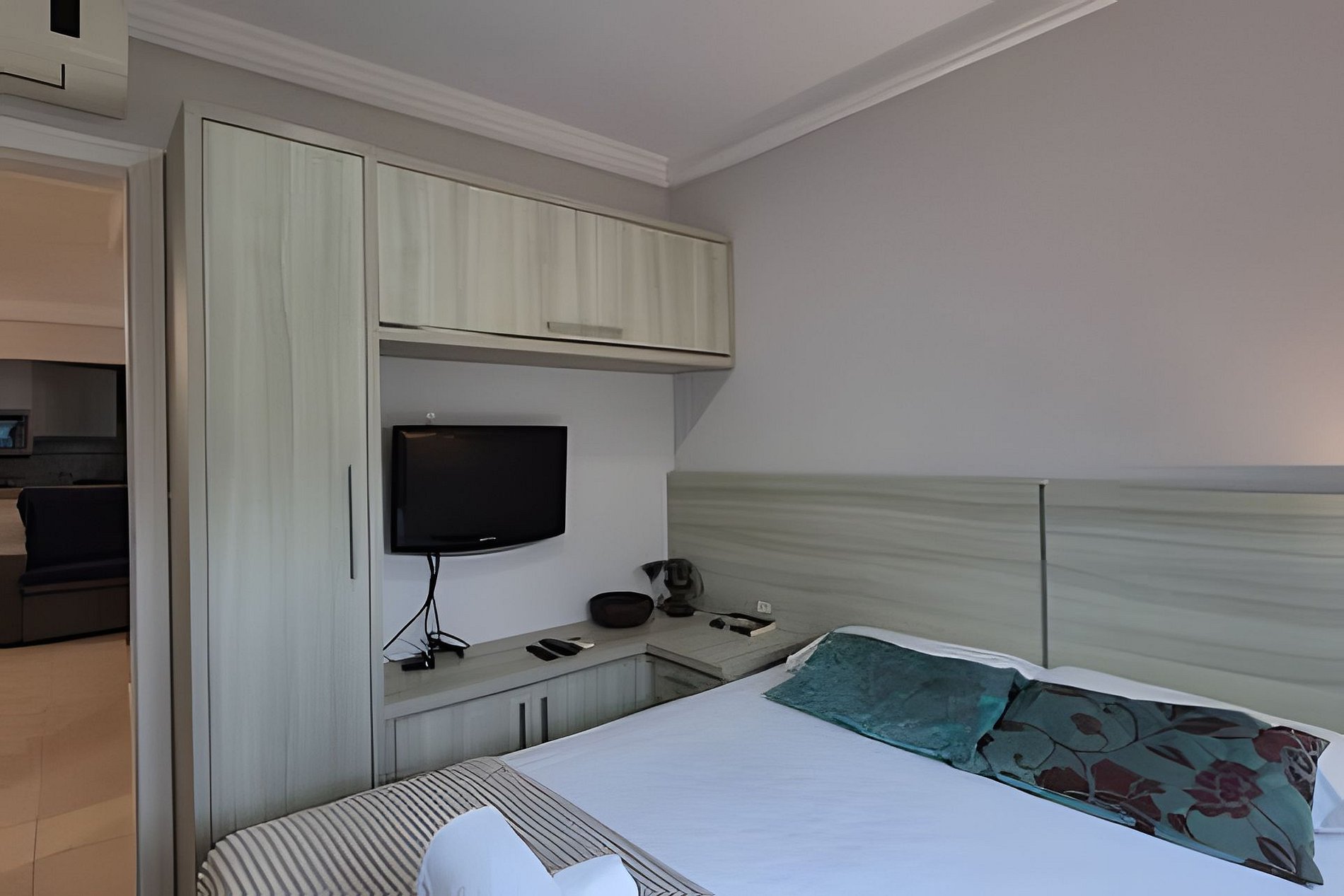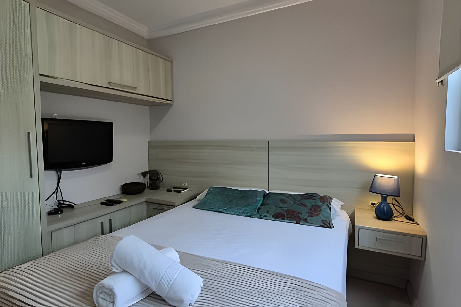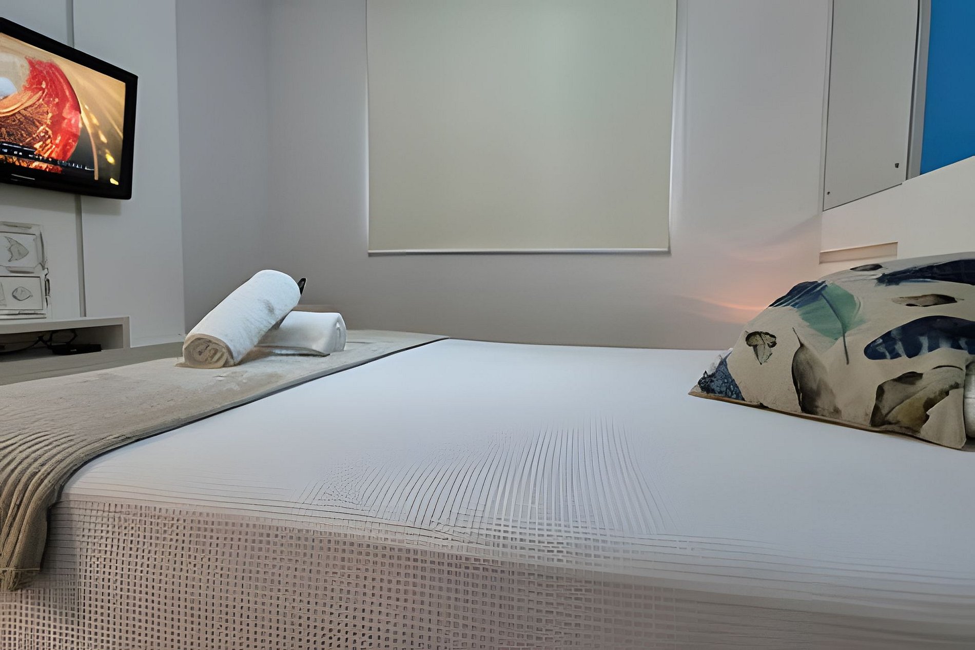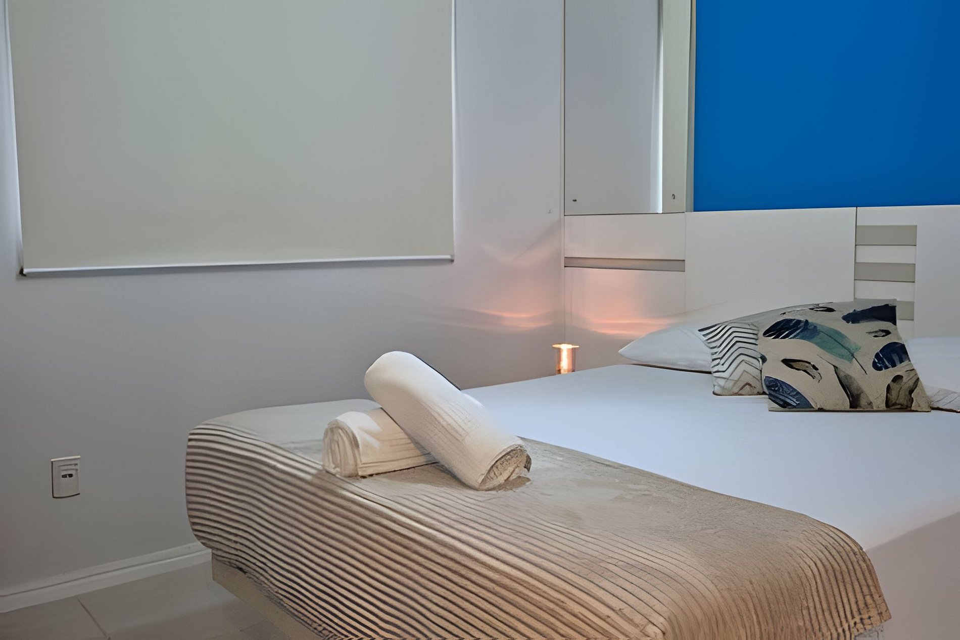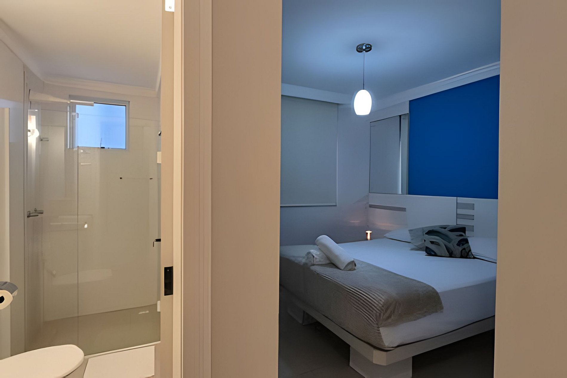 Nosso apartamento destaca-se pela varanda gourmet equipada com churrasqueira a carvão, proporcionando um espaço adicional para refeições e lazer. A cozinha completa permite que os hóspedes preparem suas próprias refeições com facilidade. Cada quarto foi cuidadosamente decorado para oferecer conforto, e a suíte principal conta com uma cama queen-size. As comodidades modernas, como ar-condicionado em todos os ambientes, Wi-Fi de alta velocidade e TV a cabo, asseguram uma estadia agradável.