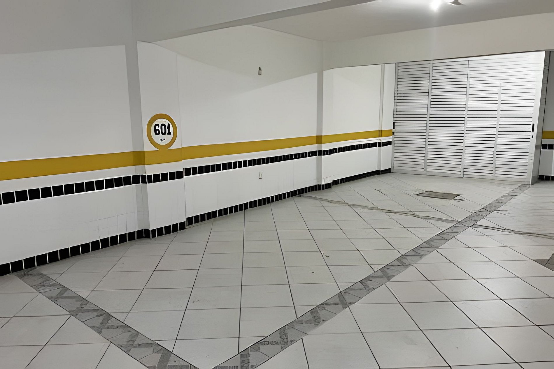 Ao sair do elevador a porta de acesso a lixeira encontra-se à esquerda.