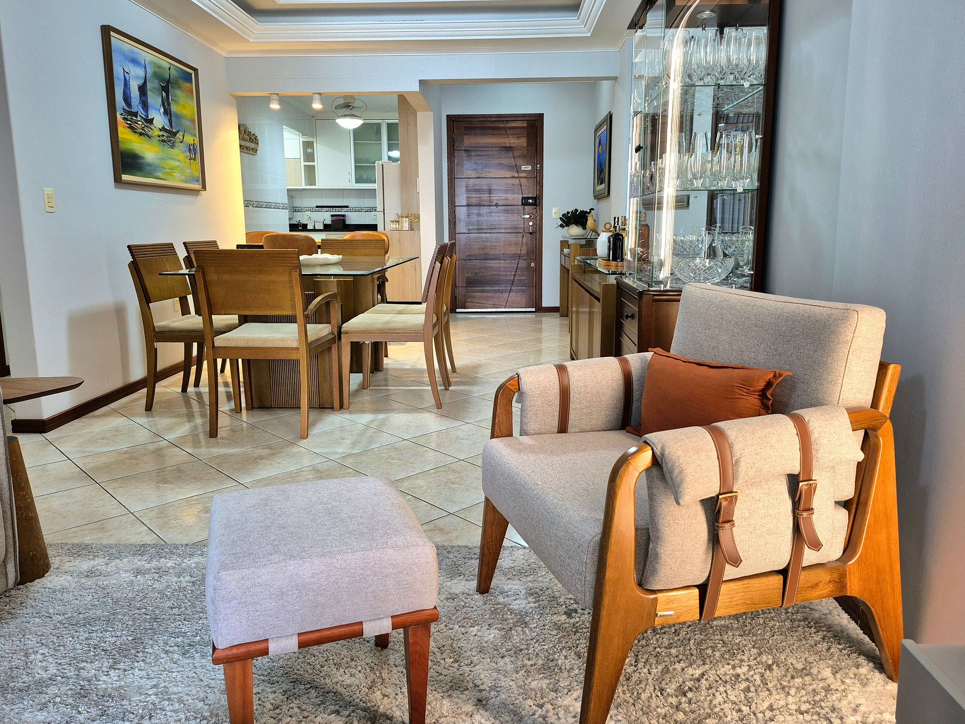 Área de estar com sofá/cadeira