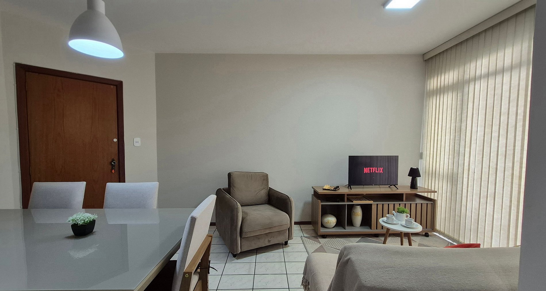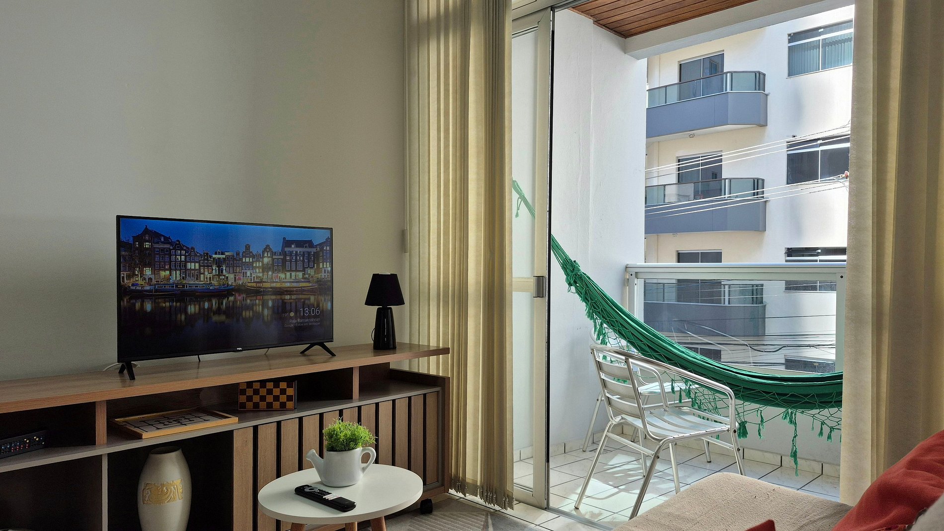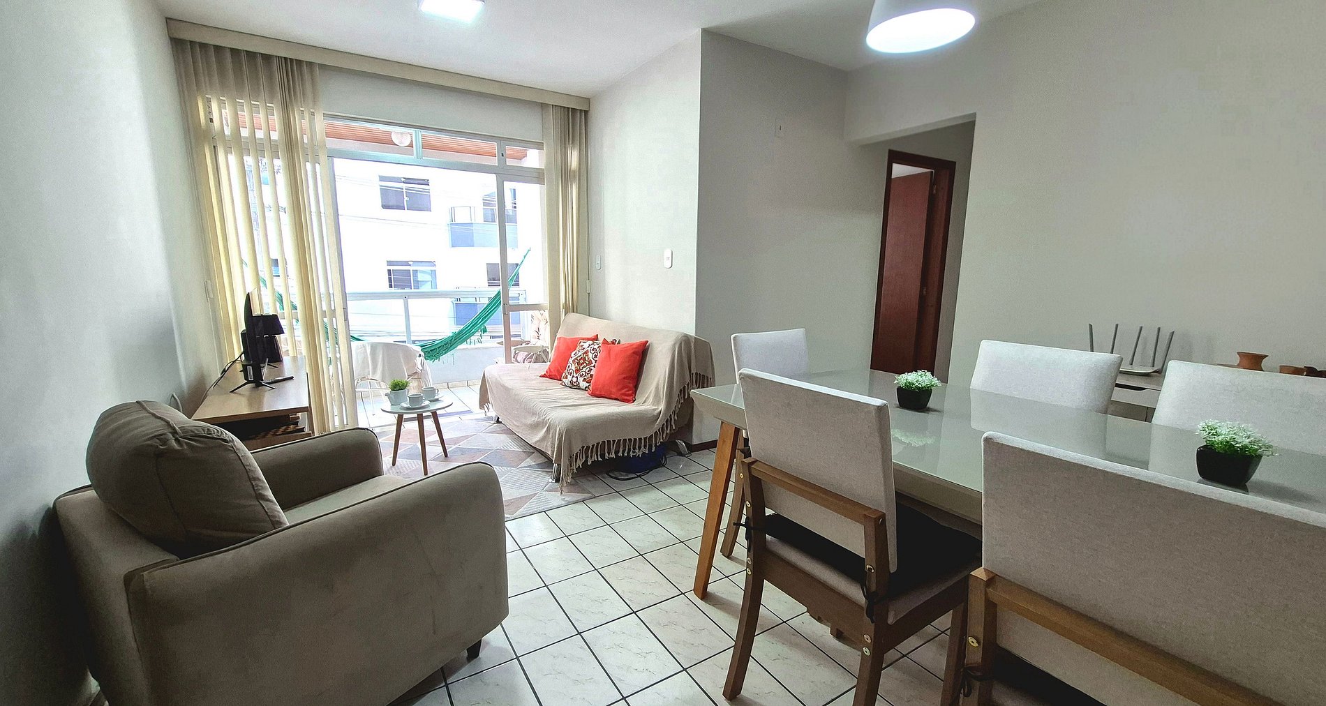 O apartamento é totalmente mobiliado, garantindo uma estadia prática e confortável. A varanda, equipada com um espaço para relaxamento, é perfeita para momentos tranquilos, complementando a experiência de conforto e bem-estar que o apartamento oferece. Ideal para quem busca praticidade e comodidade em uma localização privilegiada.