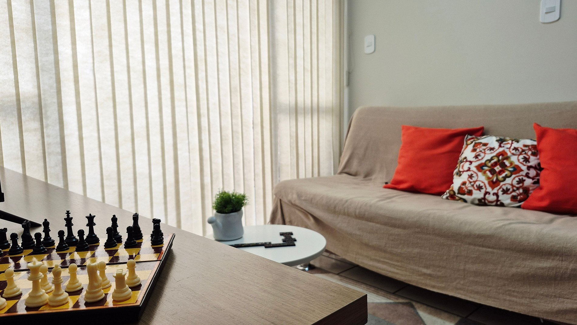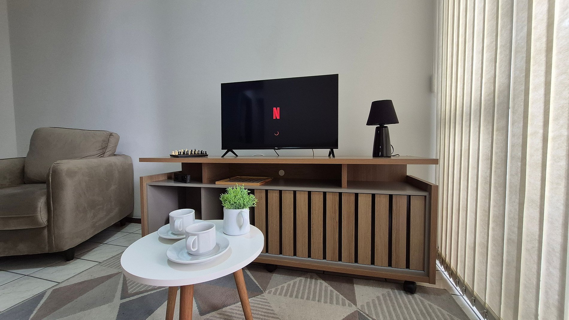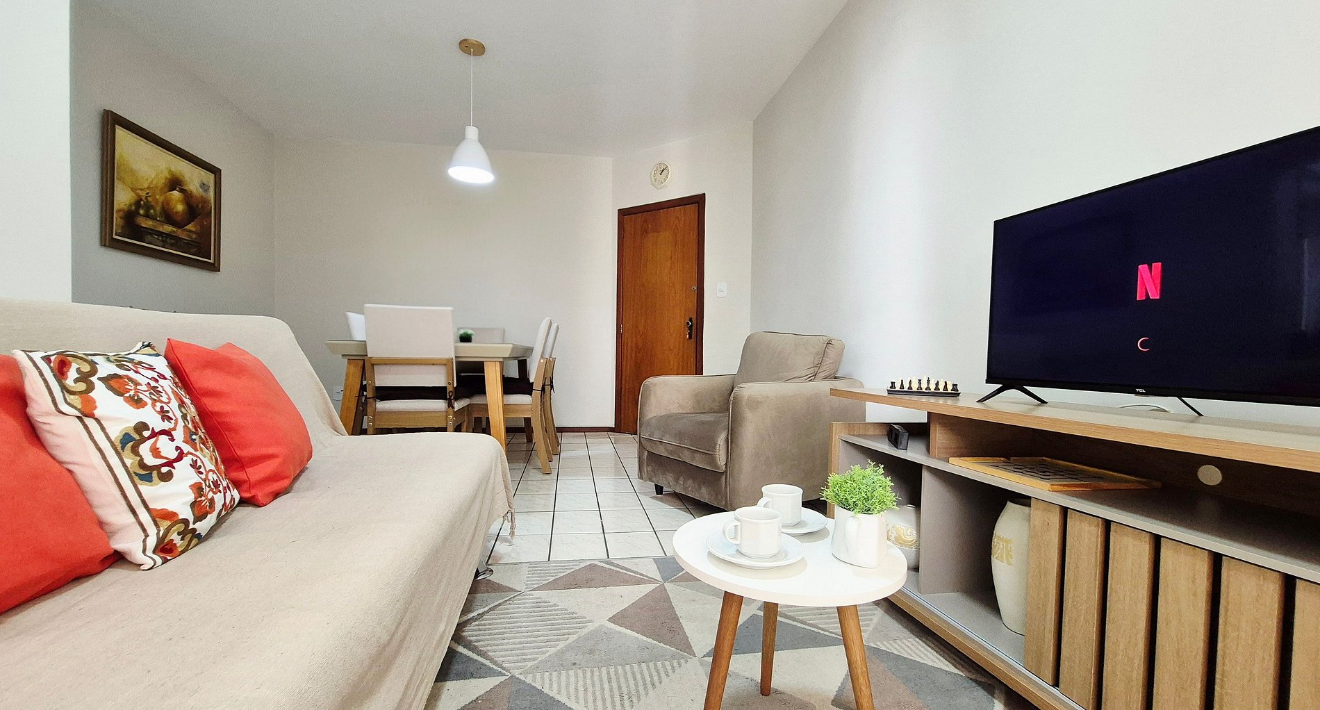 O apartamento é totalmente mobiliado, garantindo uma estadia prática e confortável. A varanda, equipada com um espaço para relaxamento, é perfeita para momentos tranquilos, complementando a experiência de conforto e bem-estar que o apartamento oferece. Ideal para quem busca praticidade e comodidade em uma localização privilegiada.