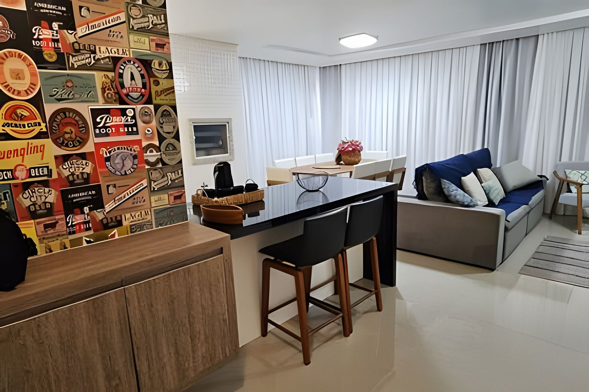 Apartamento sofisticado situado no centro de Balneário Camboriú, a duas quadras da praia e próximo à Barra Sul. Dispõe de uma suíte e uma demi suíte, lavabo, cozinha moderna com churrasqueira integrada, ampla sala de estar e jantar, e duas vagas de garagem. Ideal para quem busca conforto, localização privilegiada e comodidades completas para uma estadia inesquecível.