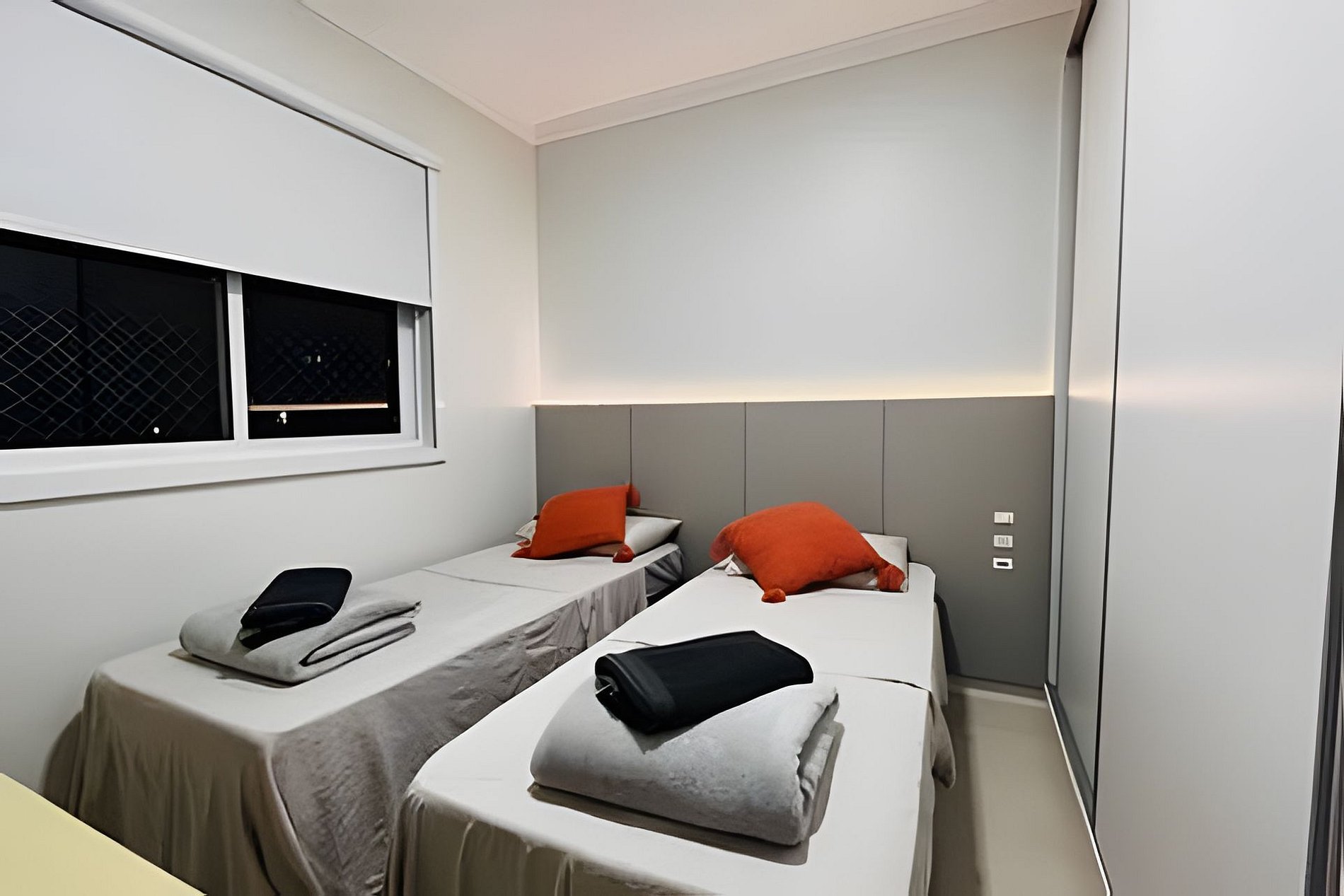 O apartamento tem 2 quartos completos, todos os comodos têm ar condicionado e enxoval de cama e banho. Um dos quartos é uma suite com closet e janelão de vidro, trazendo amplitude e mais uma opção de vista. O segundo quarto pode ser montado duas camas de solteiro ou uma de casal, com opções de brinquedos e jogos para as crianças. Nossa sala de estar é ampla e com uma vista bem legal para a cidade, para o mar e para a atração Big Wheel, a Roda Gigante de Bc. Temos TV Smart com acesso a Netflix, YouTube e canais internacionais. A cozinha também é completa e conta com churrasqueira e equipamentos para churrasco. Oferecemos duas vagas na garagem e itens básicos de praia além de 2 bikes exclusivas para seus passeios. O condomínio é super seguro, com câmeras e acesso seguro em uma rua sem saída.