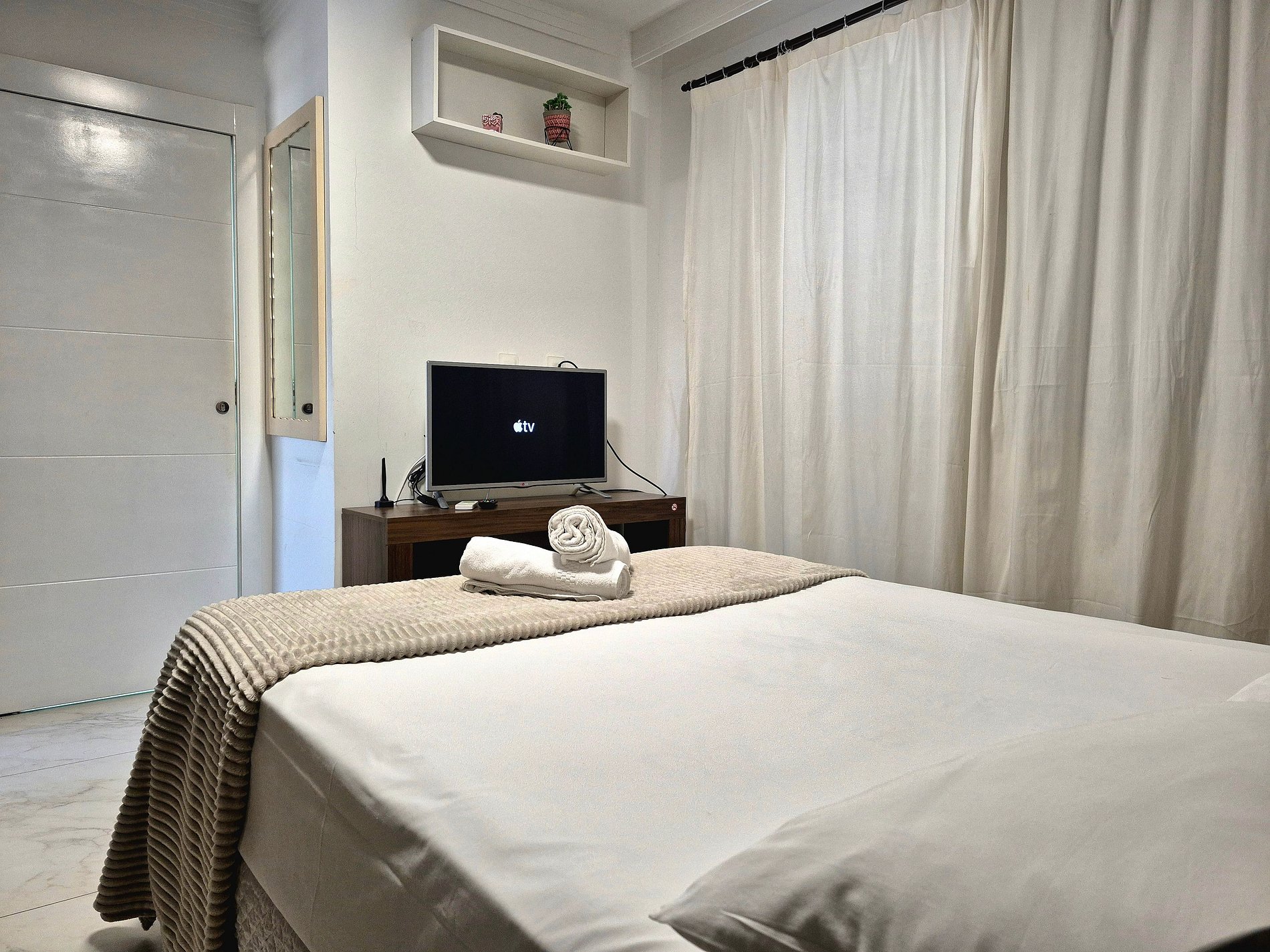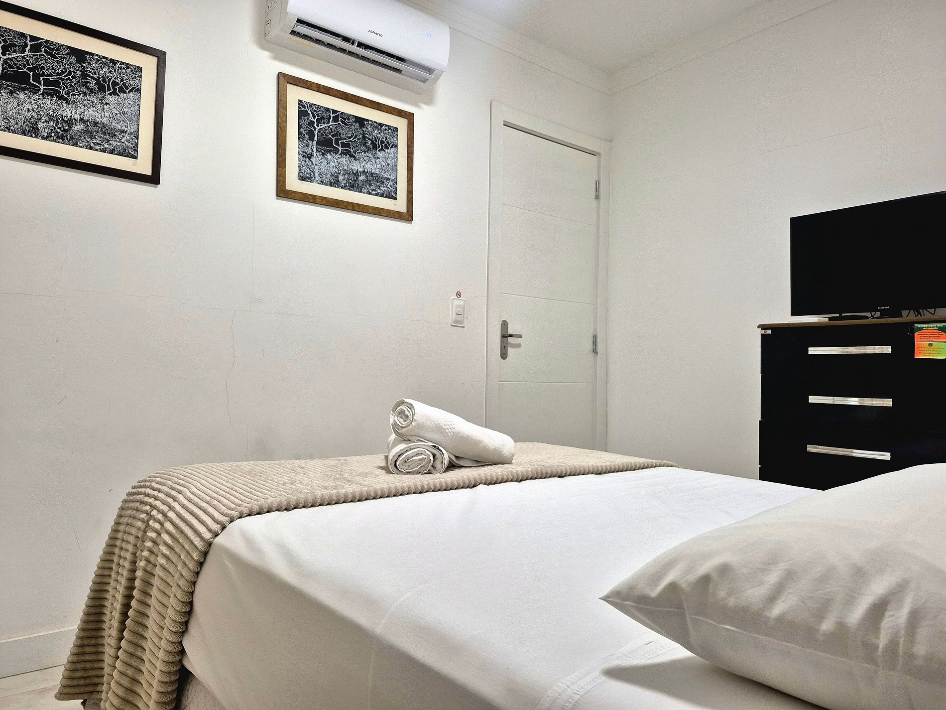 Nosso apê é em um prédio tranquilo, a rua é ao lado da praia e mesmo assim é bem tranquila quanto a transito e barulho. O apê é todo equipado com uma cozinha super completa, estrutura confortável para 2 noites ou para vários dias. TV na sala com Roku Streaming e Ar condicionado em todos os cômodos, sendo um dos quartos uma suíte, todos os cômodos com vista livre , sendo bem iluminados e ventilados. Apartamento com WI-FI. Deixamos tudo pronto para sua comodidade, com roupas de cama e banho.
