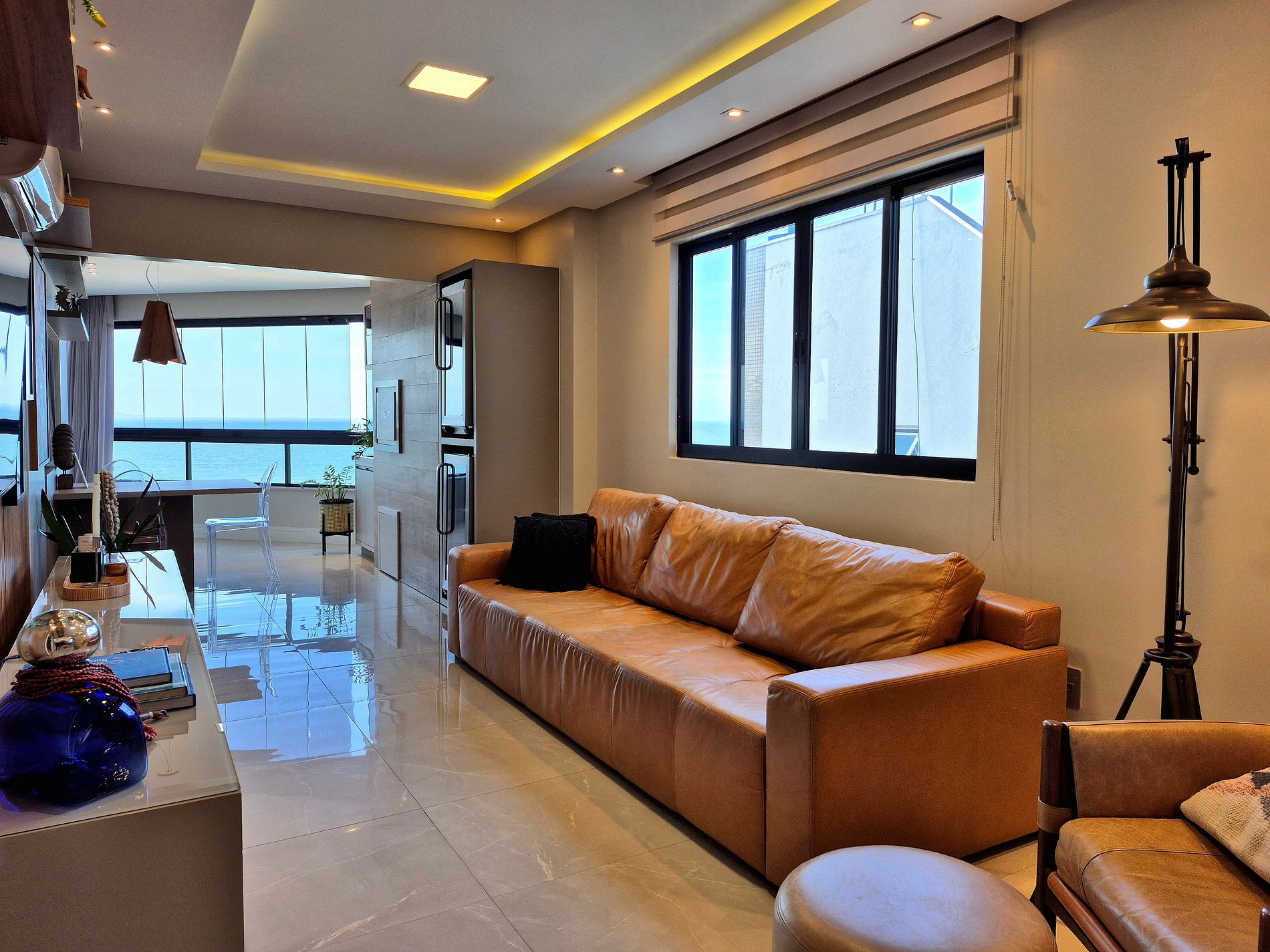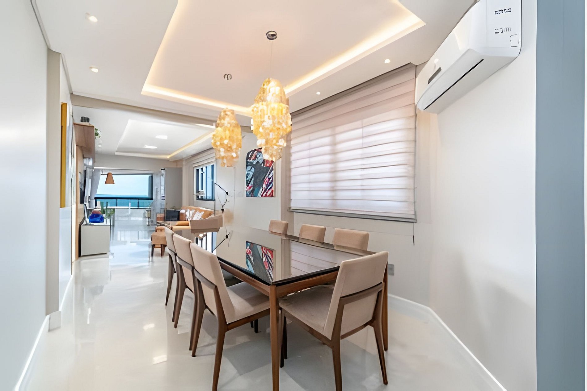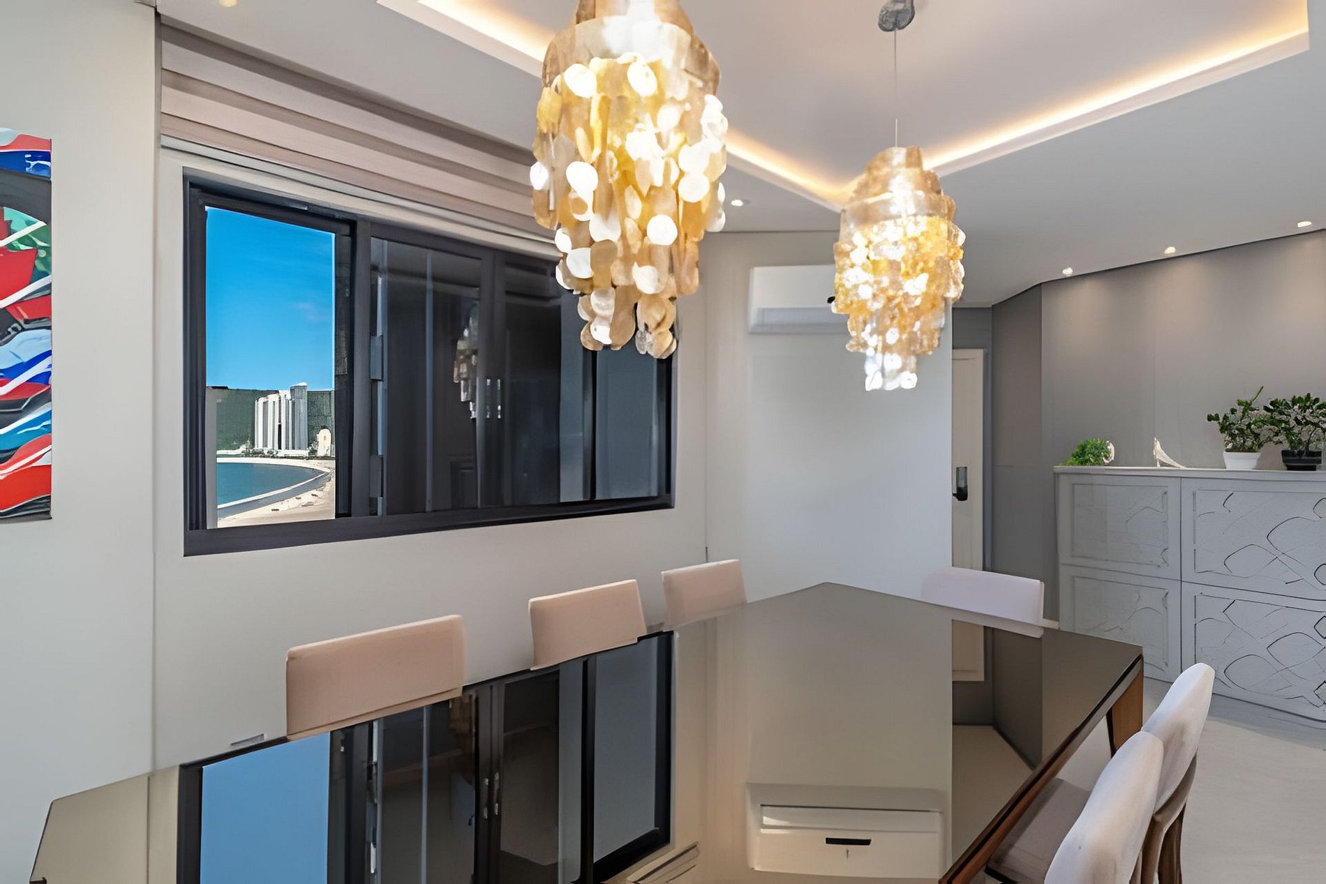 Este apartamento combina conforto, elegância e uma vista incrível do mar. Possui 3 suítes espaçosas, sendo uma com cama king e duas com cama de casal, além de um lavabo. Os ambientes são amplos e bem distribuídos, com sala de jantar e sala de TV integradas. A varanda envidraçada oferece um espaço aconchegante para relaxar e curtir a vista panorâmica. A cozinha é super equipada, com airfryer, máquina de lavar louça e utensílios completos. A lavanderia dispõe de máquina de lavar e de secar para maior praticidade.