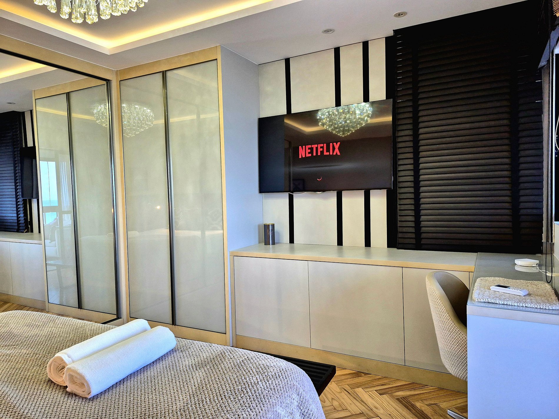 8. Contamos com TV com serviço Smart. Outras plataformas de assinatura podem ser configuradas pelos hóspedes, incluindo seu login e senha. Não esqueça de desconectar ao sair.