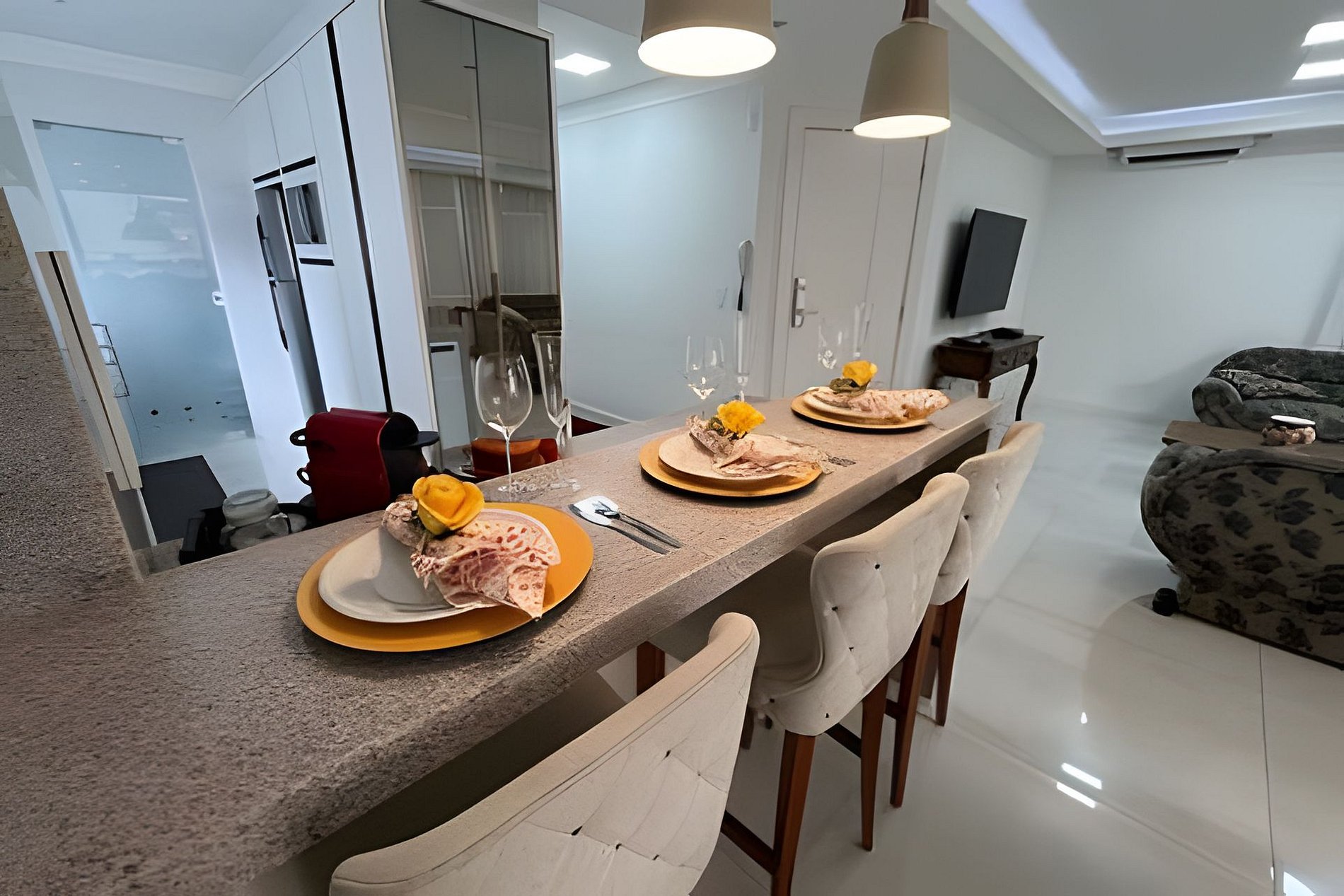 Os hóspedes terão acesso exclusivo a todas as dependências do apartamento. As áreas comuns do edifício, não estão à disposição. A entrada é feita por meio de fechadura eletrônica, garantindo praticidade e segurança.