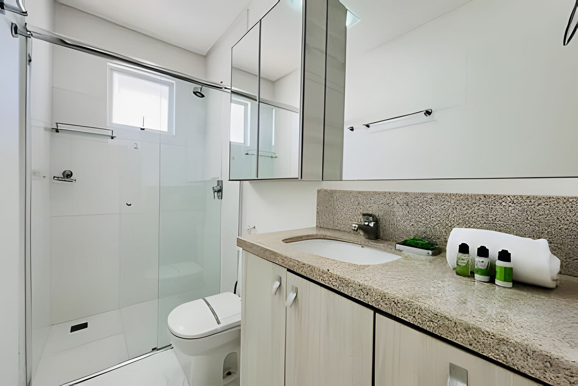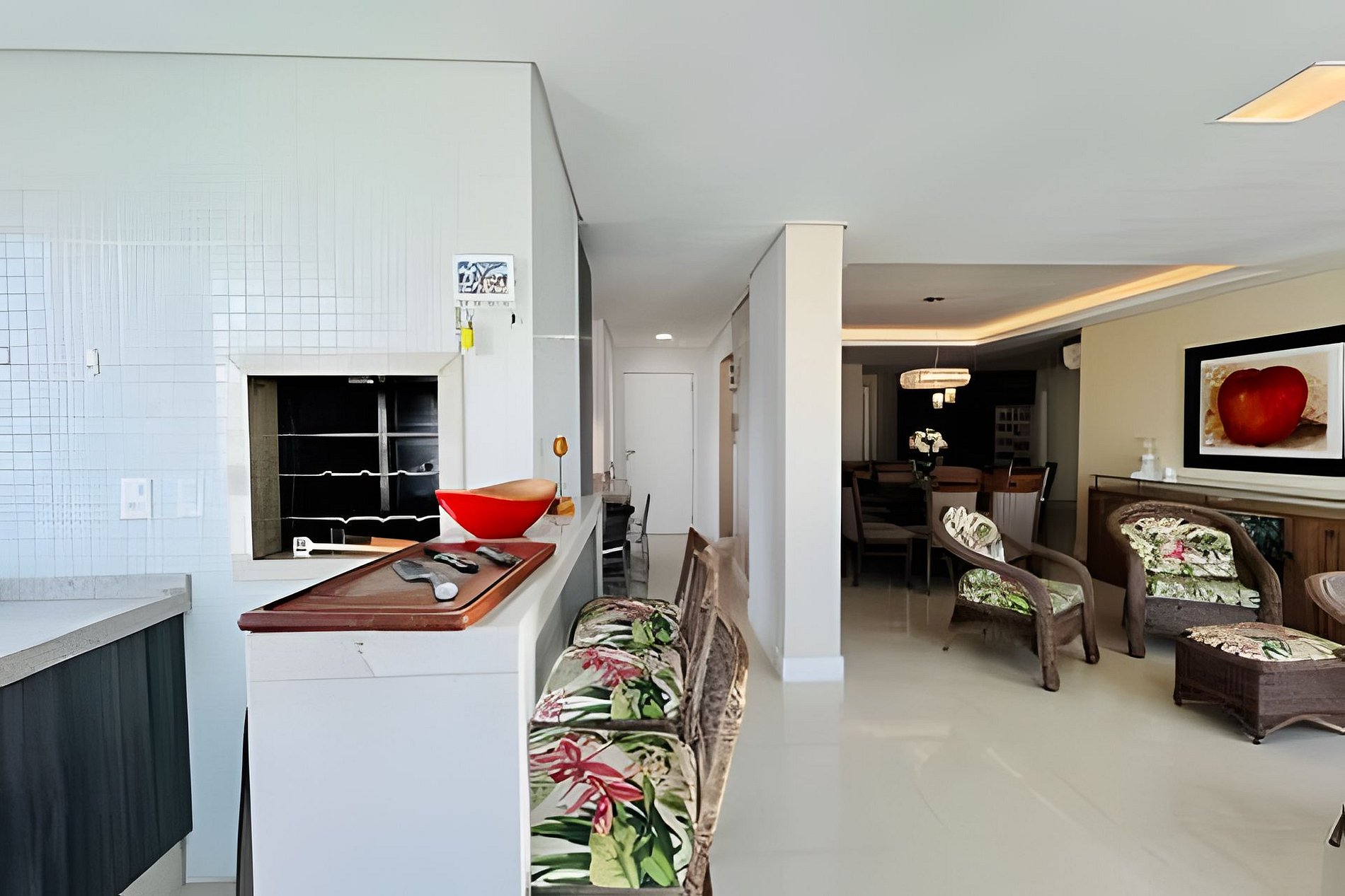 Este apartamento amplo e confortável, oferece 3 suítes (uma com varanda privativa), lavabo, varanda gourmet com churrasqueira a carvão, sala de TV, sala de jantar, cozinha completa, área de serviço, 2 bicicletas (sujeitas à cobrança adicional) e 2 vagas de garagem. Acomoda até 6 pessoas com todo o conforto. Sendo um apartamento por andar, com elevador exclusivo.